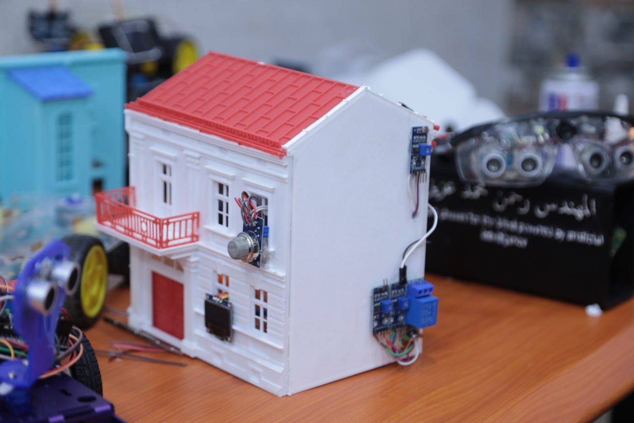 وتابع "عزيز" حديثه قائلا ان "الورشة صنعت البيت الذكي(Smart Home) ، وهو مكون من جزأين الاول تعليمي خاص بطلبة المدارس لتعليمهم كيفية التعامل معه وبرمجته، والفكرة من خلاله ستكون عن نصب اجهزة تحكم في المنازل حتى وان لم يكن البيت ذكي، ويمكن تركيب تلك الاجهزة على مفاتيح الكهرباء في البيت وتتحكم بتشغيلها واطفائها من خلال برنامج في الهاتف النقال، وكذلك تركيب اجهزة اخرى للتحكم بضخ الماء وايقافه وغاز الطبخ الذي سينصب له حساس يعطي انذارا في حال تسرب الغاز، وكذلك الابواب التي ستعمل ببطاقة خاصة "كارت" تعطي صورة وتتحكم بالابواب، وايضا يمكن نصب جهاز يتحكم بتشغيل اي مفتاح كهرباء ونصب حساسات للتربة او للامطار، وايضا حساس للانارة يمكنه اطفاء الانارة اذا بزغت اشعة الشمس".
