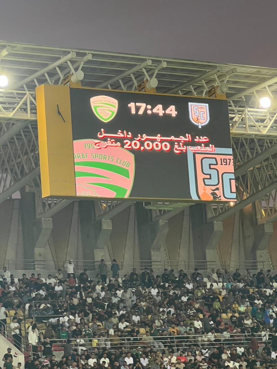 وشهد اللقاء حضوراً جماهيرياً ملفتاً في ملعب الناصرية الذي امتلات مدرجاته بالكامل، اذ بلغ الحضور اكثر من 20 الف متفرج.
