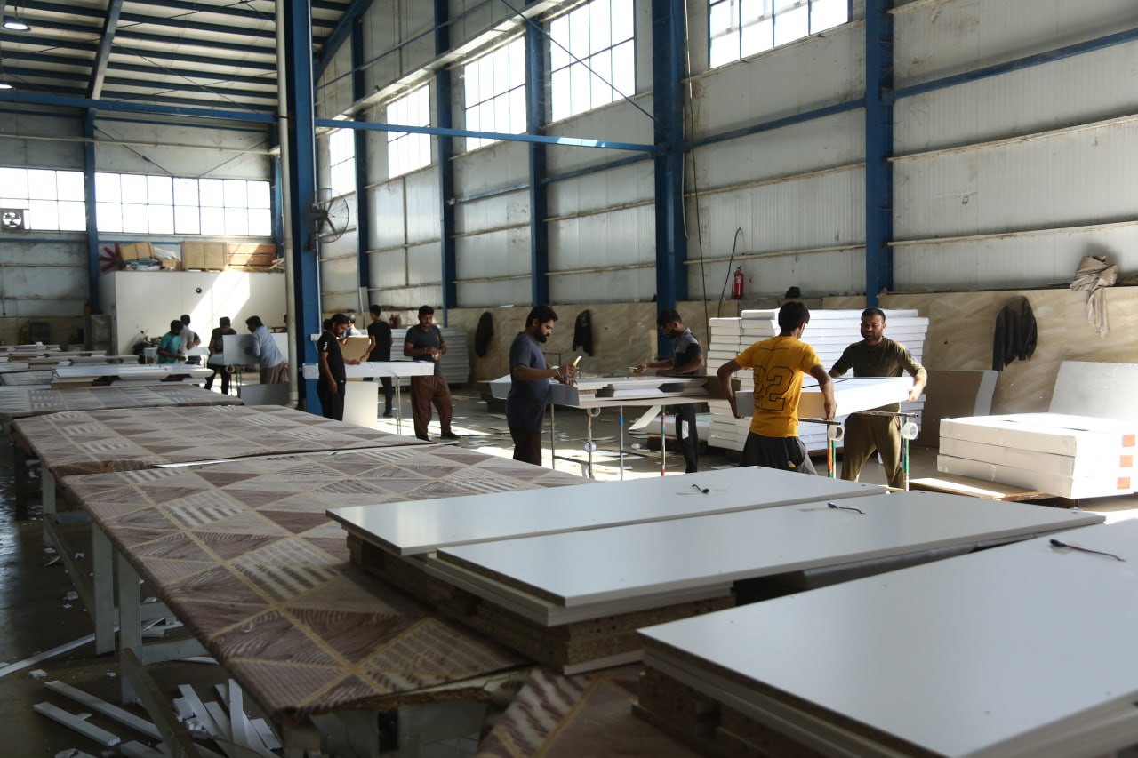 وقال المعاون التقني الدكتور "حسن ابراهيم حسن" في حديثه لوكالة نون الخبرية ان" المشروع مكون من عشر مصانع منها (5) تعمل حاليا ثلاثة منها تنتج غرف النوم، وخط لانتاج الابواب، وخط مكبس خاص بكبس الخشب، تعنى بالتعامل مع الخشب والاثاث وتنقسم الى مصانع منها لانتاج الاثاث المنزلي مثل غرف النوم، واخرى لانتاج الاثاث المكتبي الذي يتضمن المكتب والطاولة والرف وواجهة العرض "الفاترينة"، ولدينا (5) مصانع اخرى تم الشروع بالعمل فيها ضمن خطط مستقبلية لاكمال سلسلة المصانع لانتاج انواع اخرى من الاثاث"، مشيرا بالقول ان الخطوط الخمسة الاخرى تضم انتاج الاثاث المعدني المنزلي، وكذلك انتاج الاثاث المدرسي الخاص بالمقاعد الدراسية "الرحلات"، والكراسي، وستوفر مصانع ساندة توفر المواد الاولية وتقلل من الاستيراد، وتضمن توفير انواع كثيرة من المواد الاولية ونتحكم بتصنيعها دون التقيد بانواع يفرضها السوق العالمي او المحلي ما يمنحنا فرصة الاعتماد على التصاميم والصناعات النهائية الخاصة بنا".