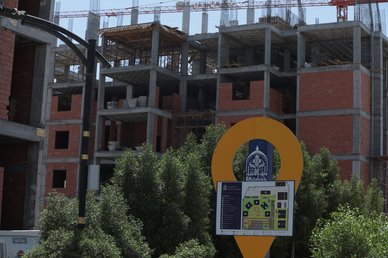 واضاف ان "الشركة المنفذة للمشروع هي شركة صرح الوارث إحدى مؤسسات العتبة الحسينية المقدسة، ووصلت نسبة إنجاز مرحلة الهيكل والتقطيع للمشروع (80) بالمئة من المخطط له، حيث تتميز تلك البنايتين المتناظرتين بالحداثة والتصميم المعماري المبتكر، وتقعان على جانبي المدخل الرئيسي للجامعة، مما يضفي توازنا جماليا يعكس التناسق والتناغم المعماري، وخصصت البناية الاولى المكونة من خمس طبقات لرئاسة الجامعة، وتحتوي على مكاتب رئيس الجامعة، والمساعد، وشؤون الطلبة، وقسم الشؤون القانونية، والسكرتارية والخدمات، ومكاتب إدارية، ومنظومات الكهرباء، والانذار والاطفاء، والصوتيات، وكاميرات المراقبة، والتكييف المركزي، وتحتوي على أربعة مصاعد من نوع الكبسولة، وفيها قاعات اجتماعات وقاعات تدريسية"، لافتا الى ان" البناية الثانية تضم الاقسام العلمية والمكتبة المركزية التي تبلغ مساحتها (1000) متر مربع بخمس طبقات، والطبقة السادسة خصصت لمنظومات الخدمات مثل الانذار والحريق، والكهرباء، والتكييف، وفيها (10) مختبرات حديثة، وقاعات محاضرات مجهزة بأحدث التقنيات، ومكاتب أعضاء الهيئة التدريسية، ، كما تضم مخزن للكتب، ومكاتب إدارية، وغرفة منظومة كهرباء، وغرفة منظومات متعددة، وثلاث مصاعد، وقاعات مفتوحة بمساحة مختلفة تتراوح بين (130 ــ 180) متر مربع تسهل التفاعل بين الطلبة والاساتذة تعزز بيئة التعليم.