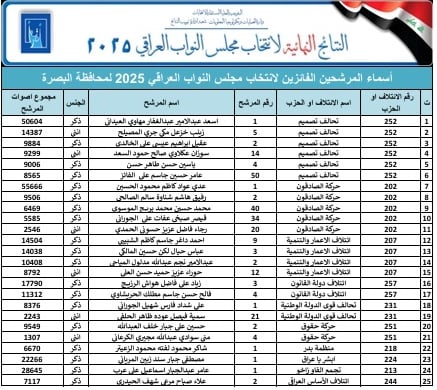 النتائج النهائية للانتخابات البرلمانية في البصرة