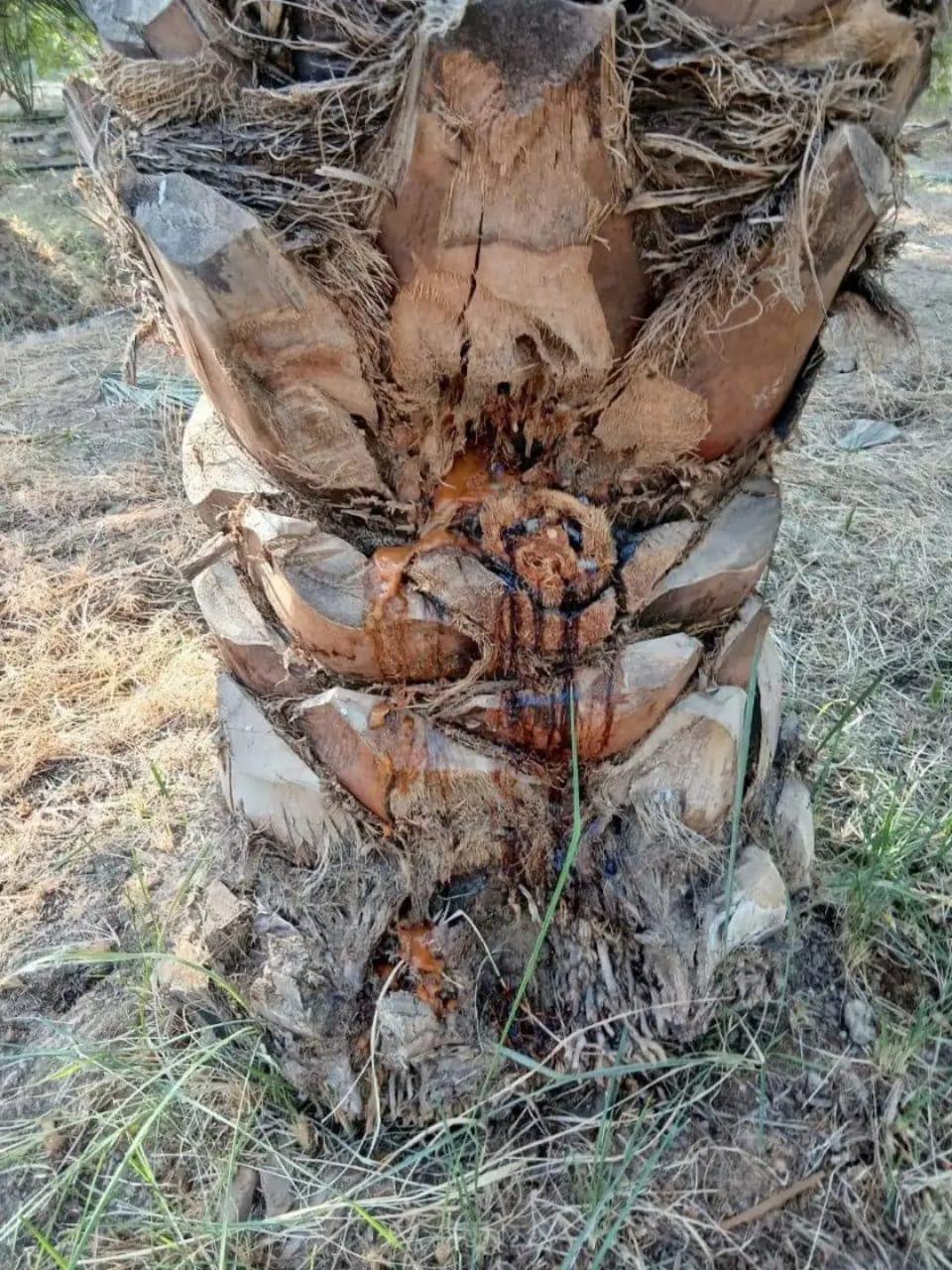 وكشف ان" (4) اصابات سجلت في ناحية "عون" بمقاطعة زراعية واحدة ورقعة من الارض متقاربة خلال العام الماضي (2024) من خلال التحري والكشف ونصب المصائد الفرمونية عن اعراض الاصابة بحشرة سوسة النخيل الحمراء التي تتضمن خروج مواد صمغية من جذع النخلة تشبه الدبس، ووجود نشارة خشب على او بالقرب من جذع النخلة، وانبعاث روائح نتنة من النخلة، وموت مفاجئ للرواكيب او الفسائل، كسر جذع النخلة وموتها بسبب الاصابة المتقدمة بالحشرة، ويعتبر واحد منها او جميعها مؤشر لوجود اصابة، وكون محافظة كربلاء المقدسة توجد فيها اكثر من (3) ملايين نخلة ومن خلال التوعية التي قدمت لكل من يمتلك نخله في بستانه او بيته او حديقة عامة عبر الفضائيات ومواقع التواصل الاجتماعي ووسائل الاعلام ترد الينا بلاغات من المزارعين حيث تنتشر الدوائر الزراعية في جميع الاقضية والنواحي بالمحافظة، وعلى الفور يتلقى المبلغ استجابة سريعة وفي حال وجدنا اصابة تتم اجراءات المكافحة المجانية وفي حال عدمها يقدم الشكر للمزارع او المواطن على وطنيته وحرصه".