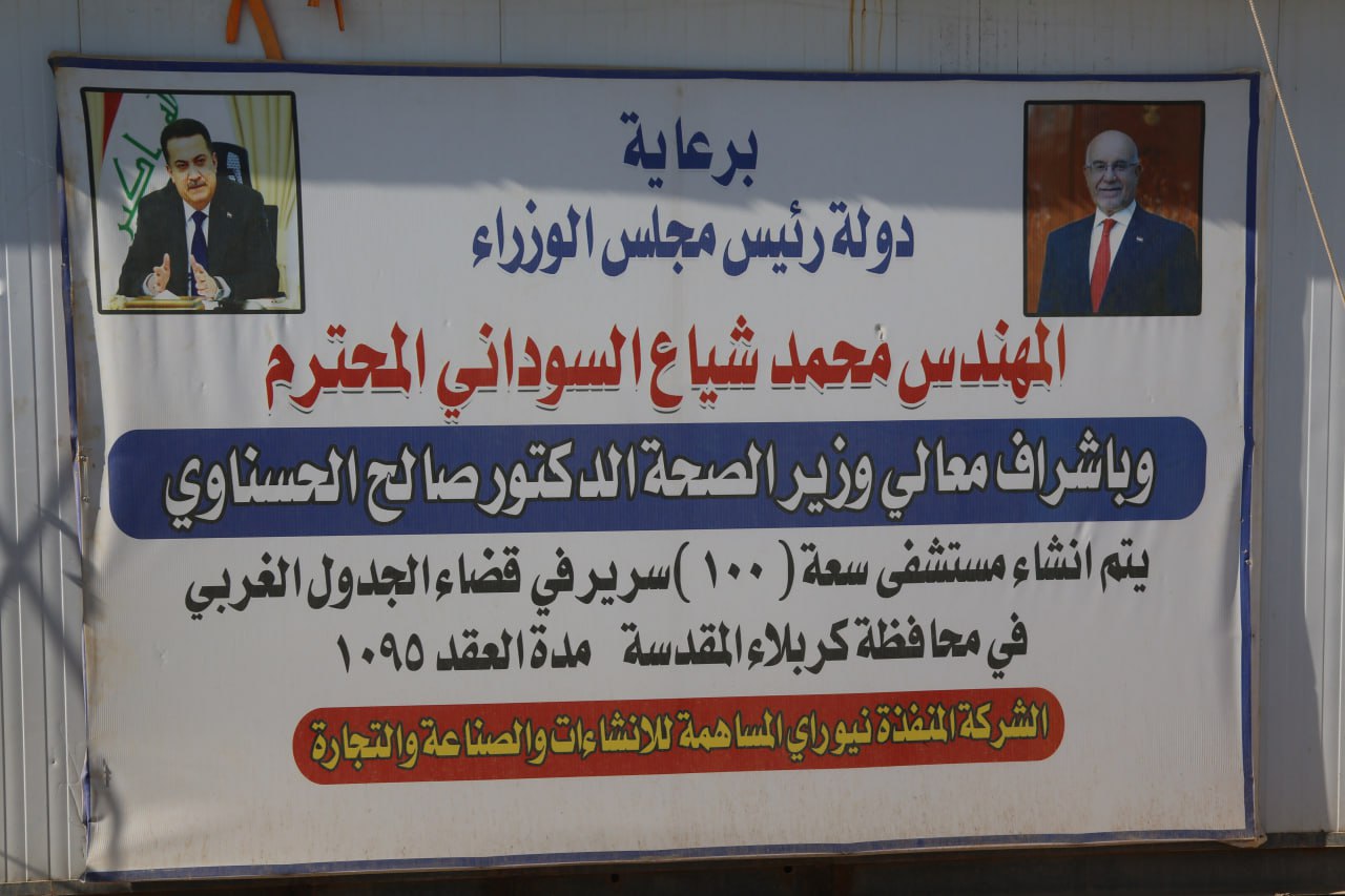 واضاف ان جهود شخصية بذلتها لاستحصال موافقات رسمية مطلوبة من دوائر حكومية عدة مثل النفط والآثار والزراعة وغيرها، ومنها استحصال موافقات من شركة نفط الجنوب في البصرة لتجنب تداخلات المشاريع مع مؤسسات حكومية اخرى، مع الاخذ بنظر الاعتبار ان قضاء الجدول الغربي هو البوابة الجنوبية لمحافظة كربلاء المقدسة، وتلك المشاريع لا تقدم الخدمة لاهالي القضاء فقط بل لحشود الزائرين خلال الزيارات المليونية في كل عام، ووضع رئيس مجلس الوزراء "محمـد شياع السوداني" عبر دائرة تلفزيونية مغلقة ووزير الصحة ومحافظ كربلاء المقدسة المهندس "نصيف جاسم الخطابي" حجر الاساس للمستشفى الاولى بسعة (100) ومكون من (5) طبقات وموقعه في مدخل القضاء من جهة محافظة النجف الاشرف وتجاوزت الاعمال في المشروع صب الاسس الخرسانية، اما المستشفى الثاني فيشيد في منطقة "شط الله" على مقابل قضاء الهندية واكملت جميع الموافقات الاصولية وسيحال للتنفيذ لوضع الحجر الاساس في الايام القليلة القادمة".