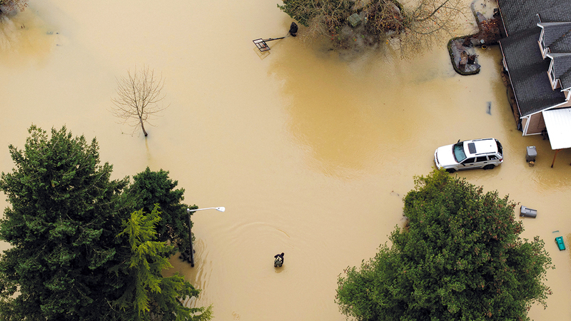 وتسببت العواصف في هطول نحو 60 سنتيمتراً من الأمطار على أجزاء من جبال كاسكيد، وأدت إلى ارتفاع منسوب المياه بشكل كبير، وتنفيذ أكثر من 600 عملية إنقاذ عبر 10 مقاطعات.