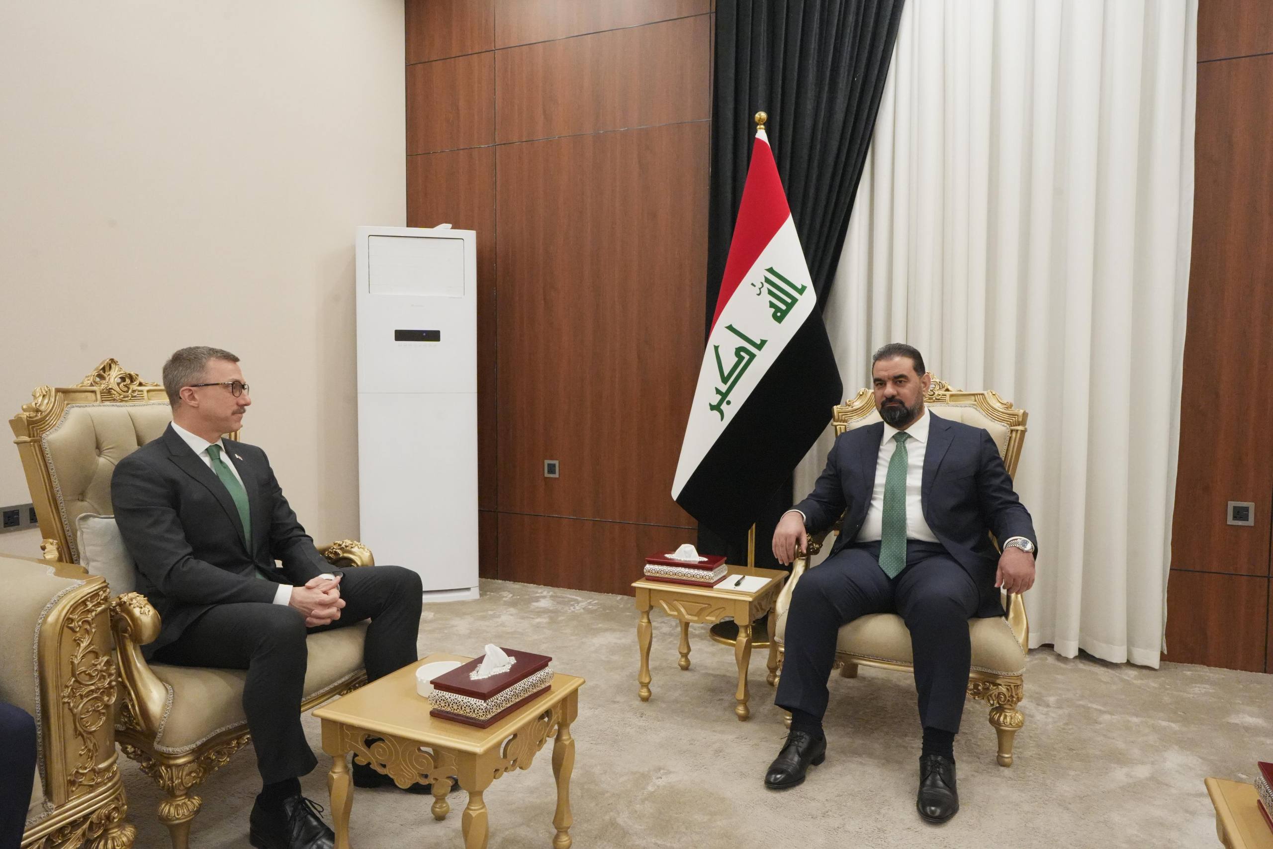 وبعد ذلك، استقبل الحلبوسي، السفيرَ البريطاني لدى العراق عرفان صديق.