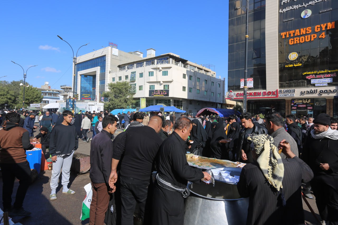 لا ينفك يعطي التوجيهات لخدام الموكب وهو جالس معنا ويتحدث عن موكبهم الذي يمثل احد بيوتات قضاء الشامية المشهورة بالخدمة الحسينية ويقول كفيل موكب "علي ولي الله" "خالد مشكور ابو عبيه" لوكالة نون الخبرية ان" الخدمة الحسينية تعلمناها من آبائنا واجدادنا فكنا نراهم في زمن النظام المقبور يتكلمون بالمنع والحيطة والحذر الا انهم يطبخون ويوزعون الطعام ويذهبون سرا مشيا على الاقدام الى كربلاء المقدسة في الاربعينية، وكنا ننتظر حلول شهر محرم الحرام حيث تعودنا على ان تلبسنا امهاتنا الملابس السوداء ويصحبوننا الى المجالس وكانت مدينة الشامية تكتسي بالسواد والحزن والنعي والبكاء من اقصاها الى اقصاها لان اهلها جميعهم حسينيون، وكانت في الايام الثلاثة عشر الاولى من شهر محرم تشهد مواكبها وحسينياتها ومساجدها يوميا محاضرة دينية ومجلس عزاء ووجبة طعام للمعزين، اما في ايام الاربعينية فكانوا يتهيؤون للسير الى كربلاء المقدسة ويأخذون الطعام معهم لعدم وجود مواكب خدمة حسينية في تلك السنين السابقة، وليس كما نراه الآن من مواكب متراصة من البصرة الى كربلاء المقدسة، وكذلك باقي المحافظات، ويتخذون الحذر الشديد في سيرهم بالبساتين ليلا ويقطعون بعض المسافات سباحة في الانهر بعيدا عن عيون ازلام النظام المقبور، وحالهم حال من طلب رأسه للثأر خائف ومرعوب لكنه يتحدى الظالمين ويصر على احياء شعائر الحسين (عليه السلام) وهو ما زرع في انفسنا كل هذا الحب والبذل والعطاء".