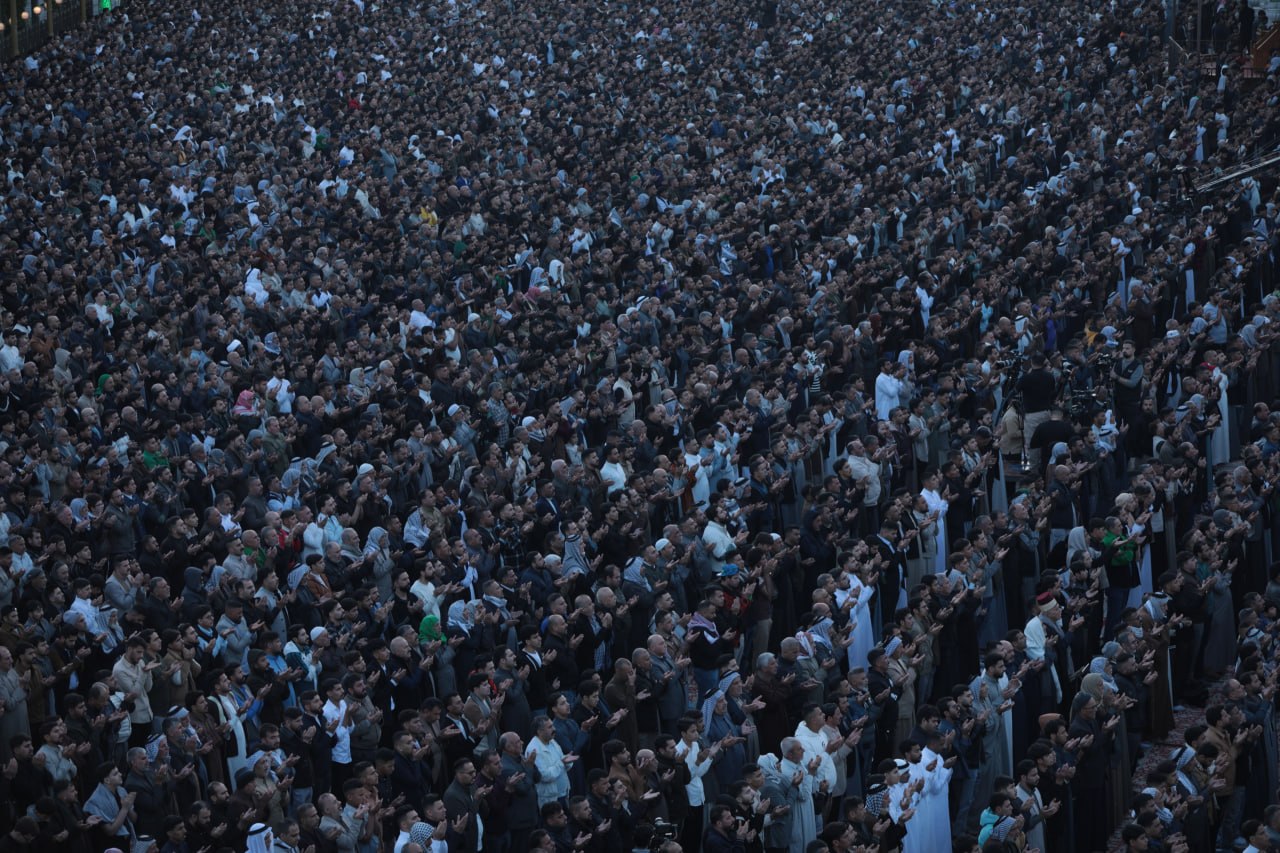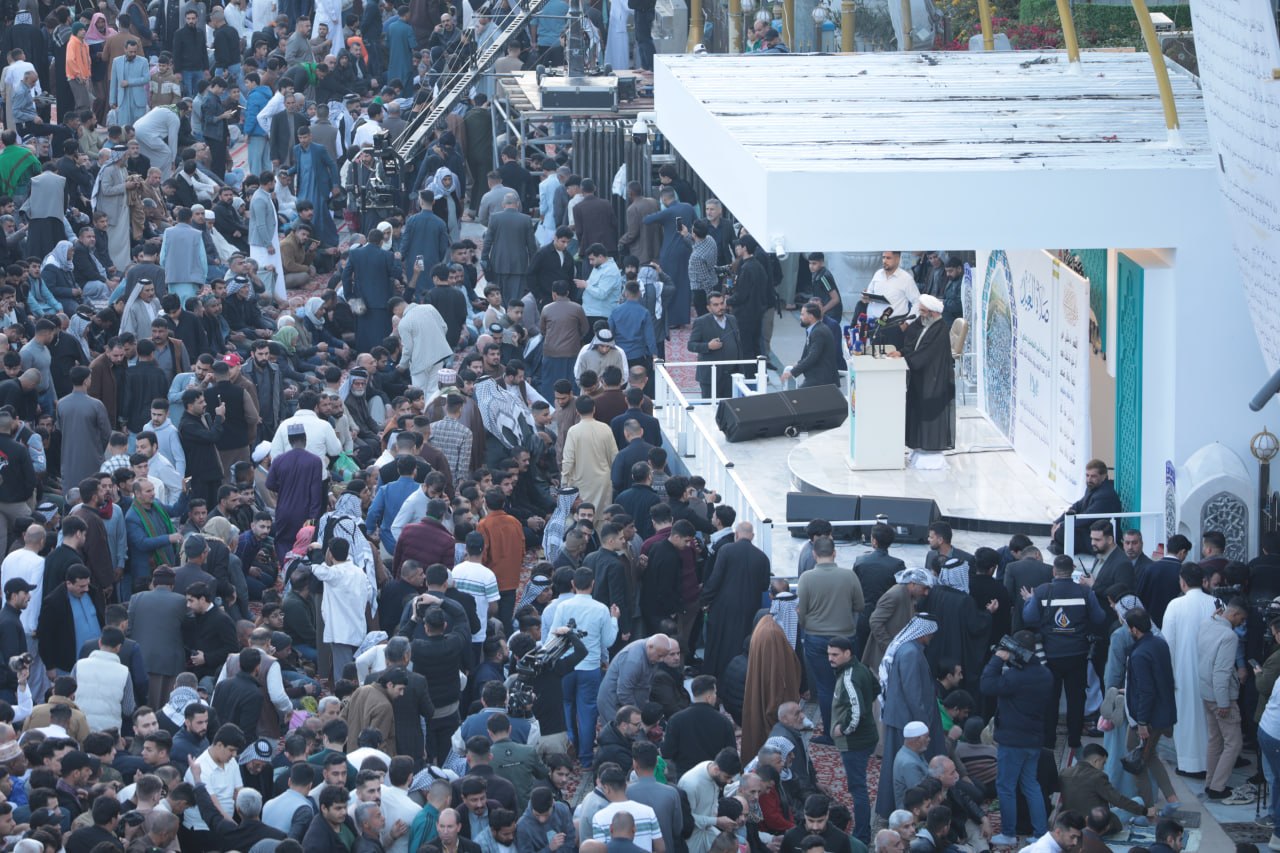 وقال خطيب صلاة العيد الشيخ "احمد الصافي" في خطبته "ها قد اطل عيلنا عيد الفطر المبارك عيد الرحمة والمغفرة بعد شهر كريم من الصيام والقيام والطاعات، وانه يوم الجوائز الالهية حيث يباهي الله بكم ملائكته فهنيئا لكم بقبول الاعمال، وأسأل الله ان يعيده علينا وعليكم وعلى الامة الاسلامية جمعاء بالخير واليمن والبركات"، مشيرا الى ان" العيد وان كان يحمل في طياته معاني السرور الا ان قلوب المؤمنين لتتقطع اليوم وهي ترى ما يحل بأشقائنا واخواننا في الدين والانسانية من ويلات ومآسي ففي الوقت الذي نكبر فيه الله تعالى فرحا بنعمته، تتعالى صرخات الاطفال، وتنهمر دموع الثكالى، وتتصاعد ألسنة اللهب فوق بيوت الأمنين في إيران ولبنان، مع تواصل العدوان العسكري عليهما"، مشددا بالقول اننا" ندين بأشد العبارات هذه الحرب الظالمة، وندعو سائر المسلمين واحرار العالم الى التنديد بها والتضامن مع الشعبين الايراني واللبناني المظلومين، ونناشد جميع الجهات الدولية الفاعلة ودول العالم، لاسيما الدول الاسلامية لكي يبذلوا قصارى جهودهم لإيقافها "، داعيا بالقول "اللهم اننا نرفع اكف الضراعة اليك وانت سميع الدعاء، اللهم احفظ المؤمنين اينما كانوا، واكشف عنهم البلاء، واجمع كلمتهم على الحق، اللهم انا نستودعك شهدائهم الذين بذلوا ارواحهم دفاعا عن ديارهم، فجعلهم في اعلى عليين، مع النبيين والصديقين واشفي جرحاهم وفك اسراهم، والهم ذويهم الصبر والسلوان".