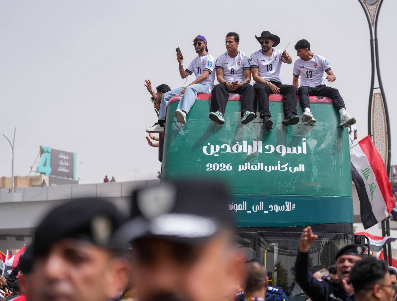 وانطلقت الحافلة المكشوفة وسط حضور جماهيري كبير، حيث احتشد الآلاف من المشجعين في الشوارع والساحات للتعبير عن فرحتهم بهذا الانجاز التاريخي، رافعين الأعلام العراقية ومرددين الهتافات الداعمة للمنتخب الوطني.