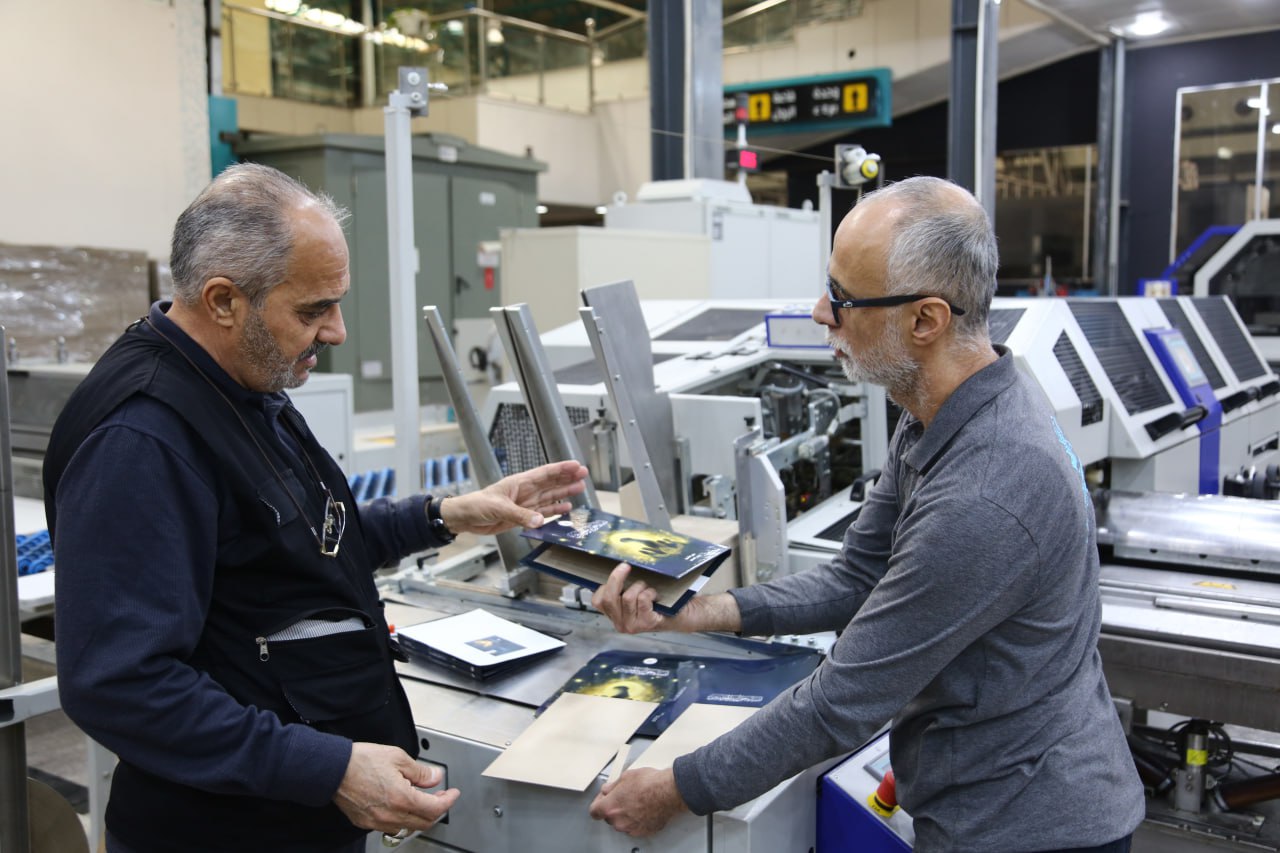 واضاف ان" الخط الانتاجي تبلغ طاقته الانتاجية (1800) كتاب في الساعة يديره (23) منتسب كل منهم يعمل على جزء من الخط الانتاجي، واصبح له الخط الانتاجي زبائن كثر من العاصمة بغداد والانبار والبصرة ومن محافظات اخرى، وما لمسناه من خلال تنفيذنا لعقود مع عدد من الوزارات والهيئات والمؤسسات وجهات عدة ان انتاجنا لا يوجد له منافس في العراق، لان المكائن حديثة والمواد الاولية مثل المشمع والجلد والصمغ الحراري والغره الابيض من افضل ما موجود في العالم، كما نعمل على متابعة اي تحديث في العالم على مكائن الطباعة والتجليد، ونقوم بمخاطبة المشرف علينا لتوفيرها، ونعمد الى ادخال منتسبينا في دورات محلية من خلال الاستفادة من خبرتي المهنية التي تمتد الى (34) سنة في هذا العمل ودخلت الكثير من الدورات التدريبية العالمية في المانيا وايطاليا، وفي كل مدة نغير عمل منتسبينا من جزء الى آخر في الخط الانتاجي حتى اصبح الجميع لديهم الخبرة والاماكنية للعمل على جميع مفاصل الخط الانتاجي حتى يصلوا الى تمكنيهم من العمل على جميع مكائن الخط الانتاجي".