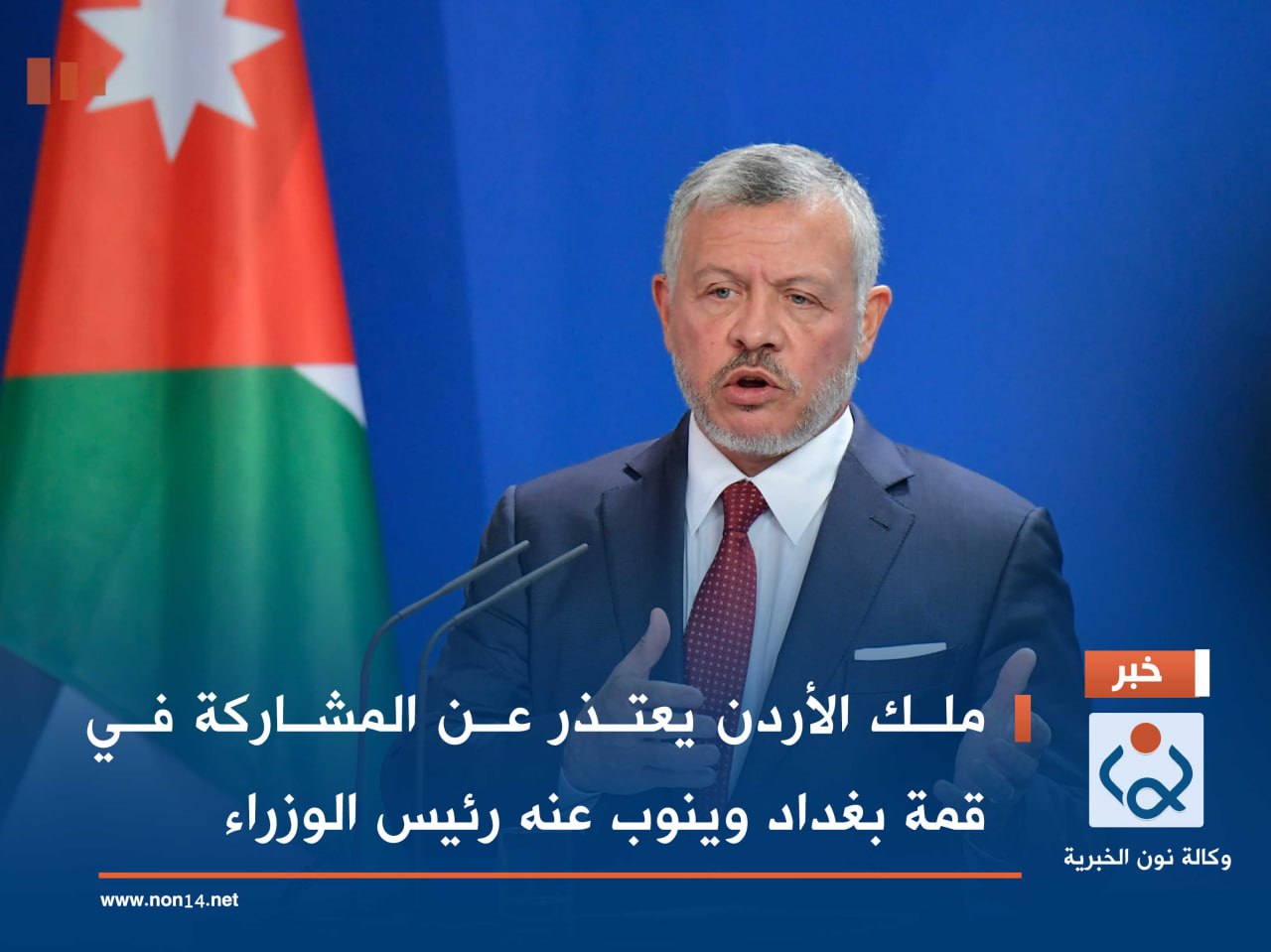 ملك الأردن يعتذر عن المشاركة في قمة بغداد وينوب عنه رئيس الوزراء
