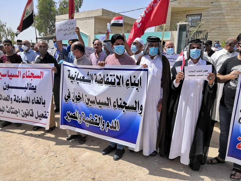 نظم المعتقلون والسجناء السياسيين ابان النظام السابق وذوي الشهداء وثوار الانتفاضة الشعبانية عام ١٩٩١ تظاهرة امام مؤسسة السجناء السياسيين في كربلاء المقدسة للتنديد بالدعوات المنادية لقطع رواتب والغاء هذه القوانين وقطع مستحقاتهم واستنكارا للجنة الخماسية التي شكلها رئيس الوزراء للنظر في هذه القوانين .