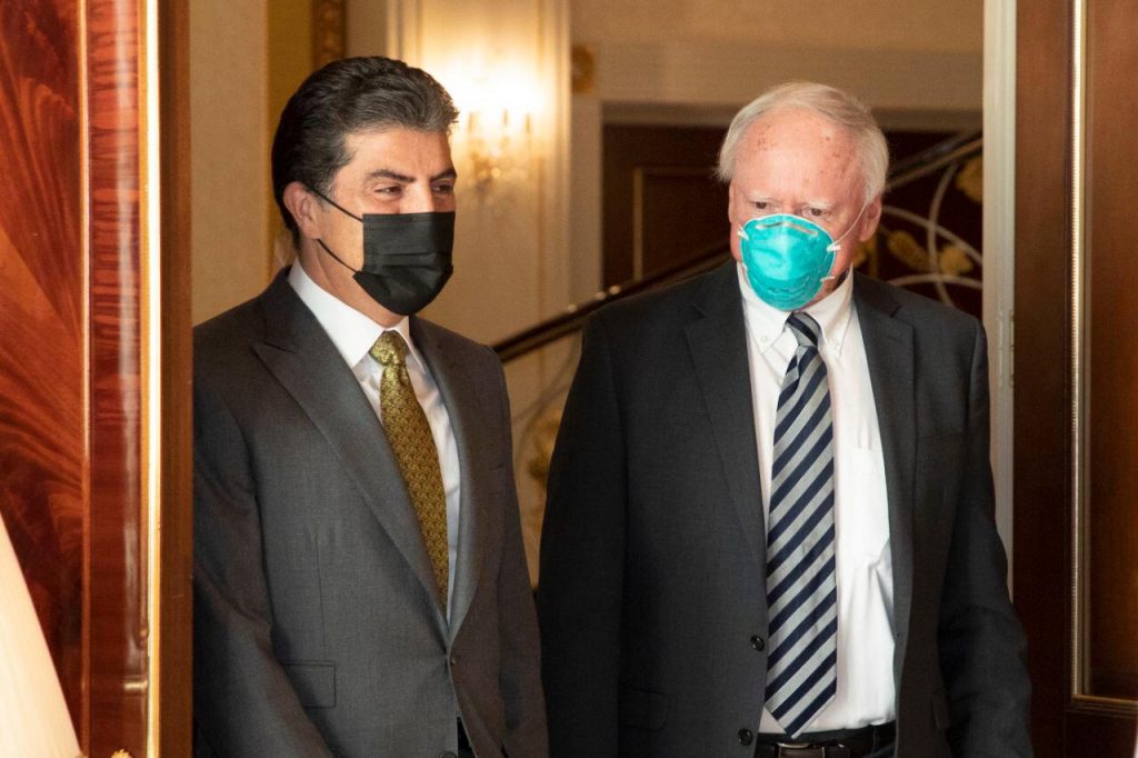 واعرب جيفري عن دعم وسعادة الولايات المتحدة الامريكية "للحوار الجاري بين الاطراف الكردية في سوريا بهدف معالجة خلافاتها"، مشيرا الى "الدور الايجابي الذي يؤديه نيجيرفان بارزاني رئيس اقليم كردستان في اطار توحيد صفوفها، ومساعدتها لحل تلك الخلافات والمشاكل"، بحسب البيان.