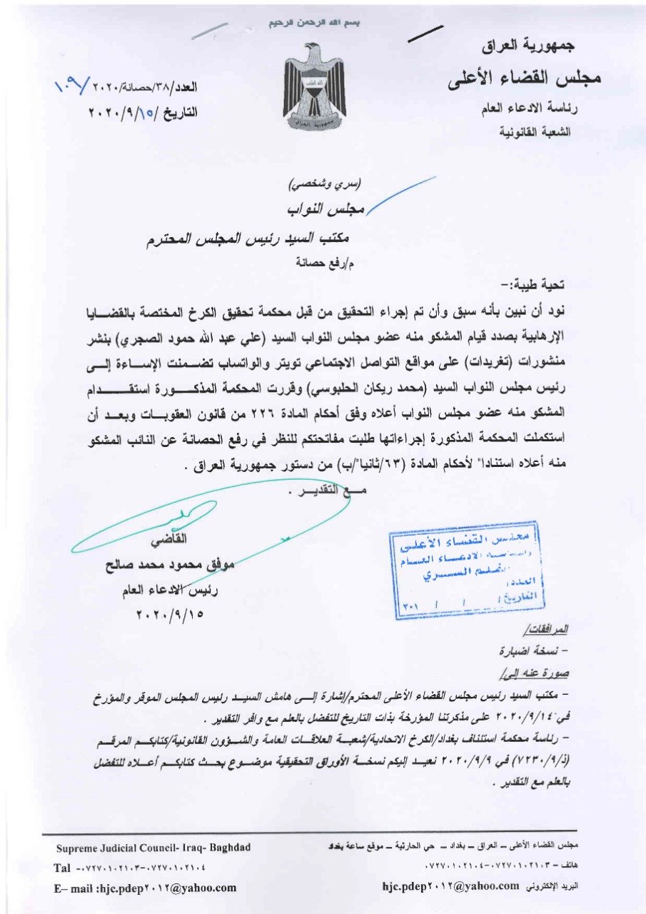تنشر وكالة نون الخبرية، وثيقة تتضمن قراراً ضد النائب علي الصجري بشأن التعويضات التي تسلمها بحجة اعدام والده لاسباب سياسة، فيما كشفت مصادر حقيقة خلافه مع رئيس البرلمان محمد الحلبوسي.