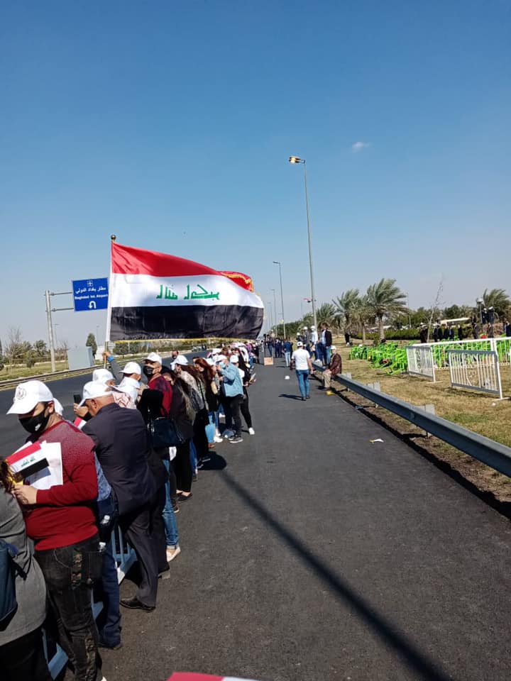 توافد المئات من العراقيين الى طريق المطار للترحيب بالبابا فرنسيس