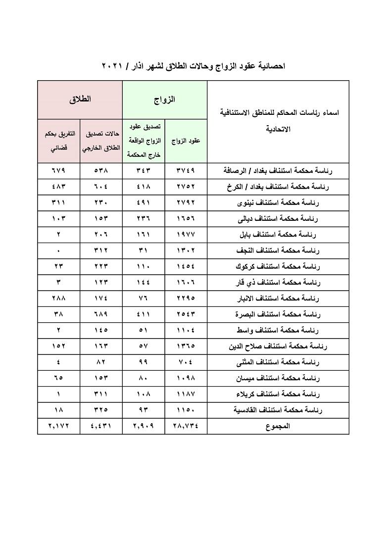 العراق يكشف باحصائية رسمية حالات الزواج والطلاق لشهر اذار لسنة 2021 الأحد 25 نيسان 2021 1 دقيقة قراءة سياسية 6,359 مشاهدة كشفت السلطة القضائية بالعراق من خلال احصائية رسمية حالات الزواج والطلاق لشهر اذار لسنة 2021 التعليقات لا توجد تعليقات بعد. كن أول من يعلق! اسمك البريد الإلكتروني تعليق إرسال التعليق تعليقاتكم والموضوعات الأكثر تداولاً أكثر المواضيع قراءة عرض الكل الأكثر قراءة اليوم الأسبوع الشهر سنة 1 تقارير تقرير: الخليج يدعم استمرار الحرب على إيران 326 مشاهدة --منذ 11 ساعة 2 سياسية لمدة 30 يوماً.. الإعلام والاتصالات تمنع ظهور "أحمد عبد السادة" في القنوات العراقية 302 مشاهدة --منذ 24 ساعة 3 سياسية استنفار أمني على الحدود العراقية السورية 293 مشاهدة --منذ 24 ساعة 4 سياسية رغم الاستهداف والخسائر.. لبنان تؤكد استمرار الخدمات الطبية وتكذب رواية الاحتلال 268 مشاهدة --منذ 24 ساعة 5 سياسية ترامب يدرس إنهاء الحرب على إيران دون اشتراط فتح مضيق هرمز 259 مشاهدة --منذ 10 ساعة 1 إقتصادية البورصة العراقية تسجل ارتفاعا جديدا للدولار في الأسواق 2723 مشاهدة --الخميس 26 آذار 2026 2 أمن ومجتمع الأنواء الجوية تصدر توضيحاً بشأن حالة الطقس في بغداد 2475 مشاهدة --الأربعاء 25 آذار 2026 3 إقتصادية مساء السبت.. تعرف على أسعار صرف الدولار في العراق 2107 مشاهدة --السبت 28 آذار 2026 4 إقتصادية فوق سعرها الرسمي.. أسعار الدولار تستقر في العراق 1781 مشاهدة --الأحد 29 آذار 2026 1 إقتصادية مساء الأربعاء.. تعرف على أسعار صرف الدولار في العراق 17298 مشاهدة --الأربعاء 18 آذار 2026 2 إقتصادية ارتفاع جديد بأسعار الدولار في العراق 15473 مشاهدة --الأثنين 02 آذار 2026 3 إقتصادية تراجع أسعار صرف الدولار في العراق 10039 مشاهدة --الأثنين 02 آذار 2026 4 إقتصادية الدينار ينتعش.. انخفاض أسعار صرف الدولار في العراق 9412 مشاهدة --الثلاثاء 10 آذار 2026 5 إقتصادية أسعار الدولار تواصل تحليقها في بورصات العراق 7996 مشاهدة --الخميس 05 آذار 2026 6 إقتصادية انخفاض جديد لأسعار الدولار مقابل الدينار في بغداد وأربيل 7813 مشاهدة --الأربعاء 11 آذار 2026 1 اخبار محلية خلال زيارته لمشروع صحن العقيلة.. ممثل السيد السيستاني يوعز بتخصيص مساحة (5) الاف متر على اسطح البنايات للزائرين 27562 مشاهدة --السبت 13 ايلول 2025 2 لقاءات منها الخاصة وفوق الكبرى والكبرى.. حيدر زيني.. طبيب أجرى (51) عملية في (28) ساعة متواصلة بمستشفى السفير 21260 مشاهدة --الثلاثاء 27 آيار 2025 3 اخبار محلية كربلاء تحدد تسعيرة "أمبير" المولدات الأهلية لشهر حزيران 2025 18901 مشاهدة --الثلاثاء 27 آيار 2025 4 إقتصادية مساء الأربعاء.. تعرف على أسعار صرف الدولار في العراق 17298 مشاهدة --الأربعاء 18 آذار 2026 5 إقتصادية ارتفاع جديد بأسعار الدولار في العراق 15473 مشاهدة --الأثنين 02 آذار 2026 6 إقتصادية مساء السبت.. تعرف على أسعار صرف الدولار مع إغلاق الأسواق في العراق 12110 مشاهدة --السبت 21 شباط 2026 آخر التعليقات 1 Hussein Al Ansari التعليق : السلام عليكم ورحمة الله تعالى وبركاته،، وهل سيتم التنفيذ بهؤلاء المجرمين أم يبقى في السجن ... الموضوع : الإعدام بحق قاتل النقيب حارث السوداني 2 Hussein Al Ansari التعليق : السلام عليكم ورحمة الله تعالى وبركاته،، وهل سيتم التنفيذ بهؤلاء المجرمين أم يبقى في السجن ... الموضوع : الإعدام بحق قاتل النقيب حارث السوداني 3 ياسمين أحمد مسلماني التعليق : نحنا نازحين من الجنوب ع بريتال بحاجي لا المسعده ... الموضوع : من كربلاء إلى بعلبك.. العتبة الحسينية تمد يد العون للمهجرين اللبنانيين 4 الهاشمي التعليق : حب الحسين عليه الصلاة و السلام يجمعنا ... الموضوع : يوزعون عليهم الورود.. ايرانيون يوقفون قافلة العتبة الحسينية الاغاثية في أربع مدن 5 أحلام التعليق : السلام عليكم ورحمة الله وبركاته عائلة نازحة من الجنوب ارجو منكم المساعدة لا نملك شيء ... الموضوع : مدير مكتب السيد السيستاني في لبنان يتفقّد مطابخ النازحين في بيروت وجوارها