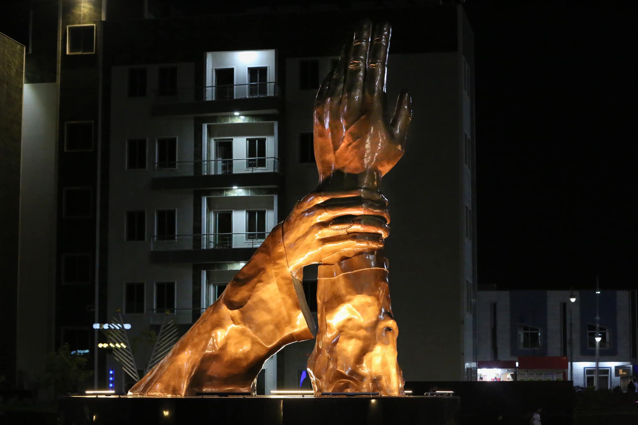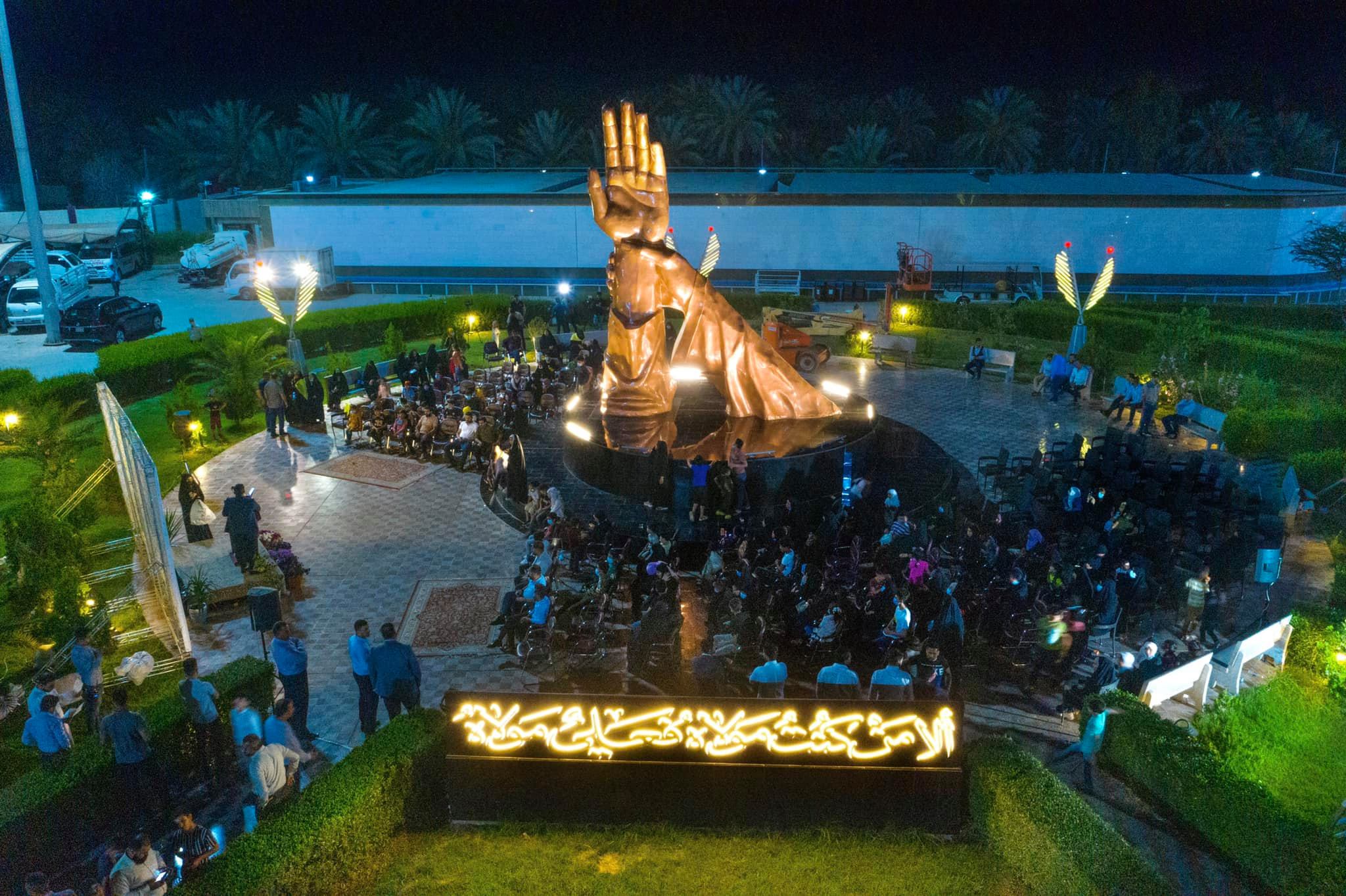 ازاحت العتبة الحسينية المقدسة الستار عن نصب كبير يمثل بيعة الغدير وسط احدى مدن الزائرين بكربلاء