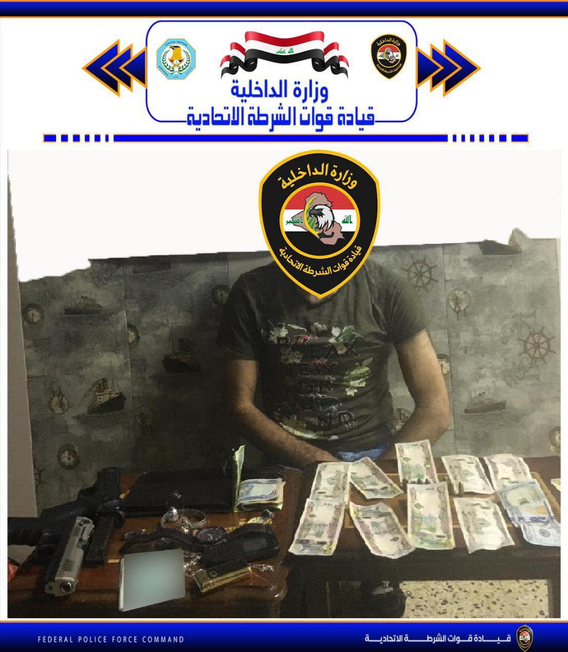 وأضاف، أن "العملية أسفرت عن إلقاء القبض على متهمين في منطقة زيونة ببغداد حيث ضبط بحوزتهما مبلغ (500) ألف دينار عراقي مزور بنية بيعه ضمن قاطع المسؤولية، كما تم ضبط مسدسين ومخزني مسدس"، مشيراً إلى أنه "تم تسليمهما مع المضبوطات إلى جهة الاختصاص لإكمال الإجراءات القانونية والتحقيقية اللازمة بحقهما".