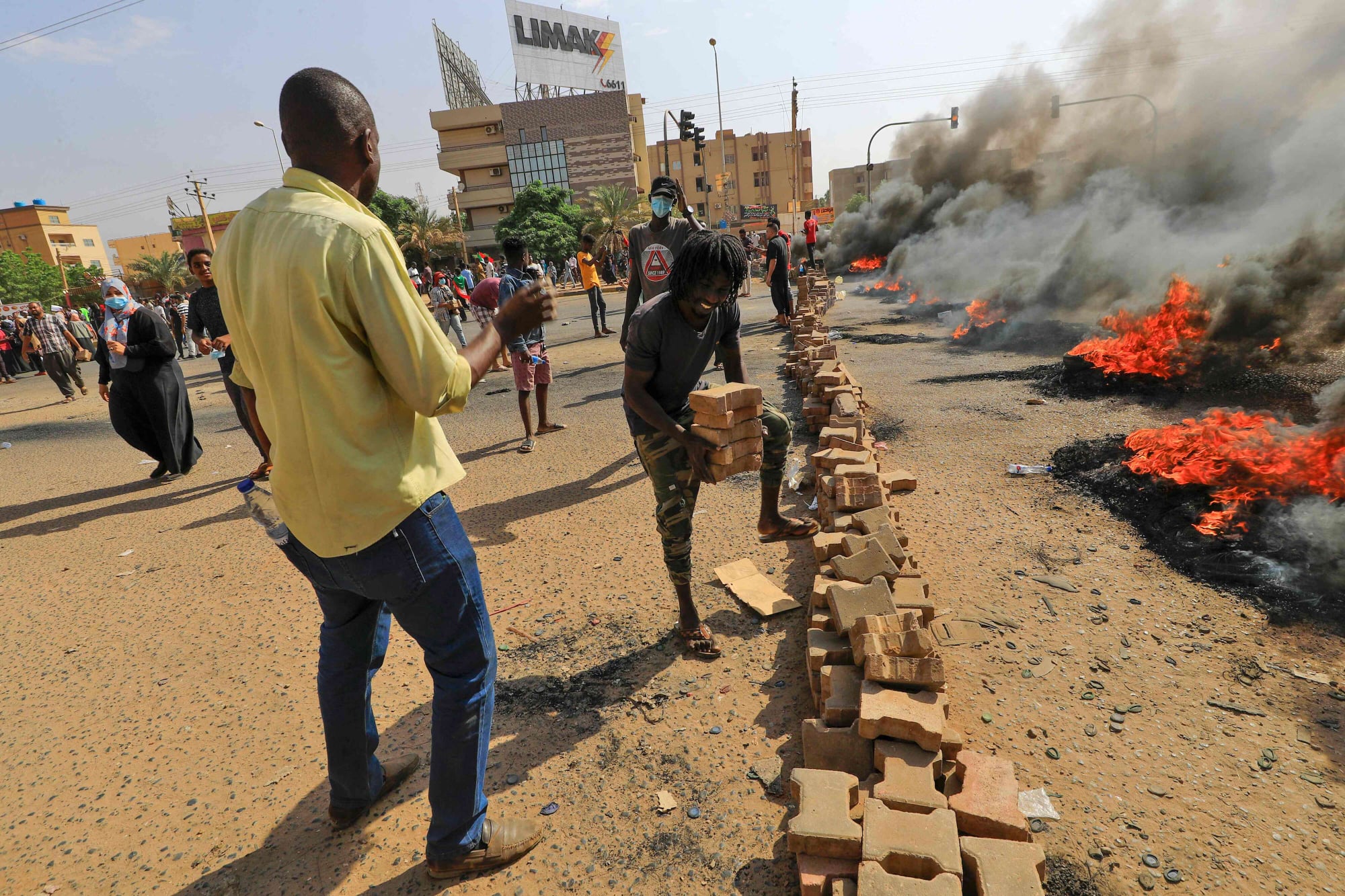 وقطع رجال بزي عسكري الطرق التي تربط وسط العاصمة السودانية بكل من خرطوم بحري وأم درمان، المدينتان المحاذيتان للعاصمة، فيما نزل عشرات المتظاهرين الى الشوارع وقطعوا طرقا وأشعلوا إطارات، احتجاجا على اعتقال المسؤولين الحكوميين.