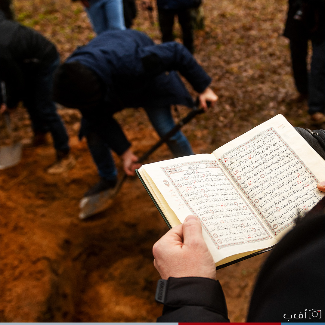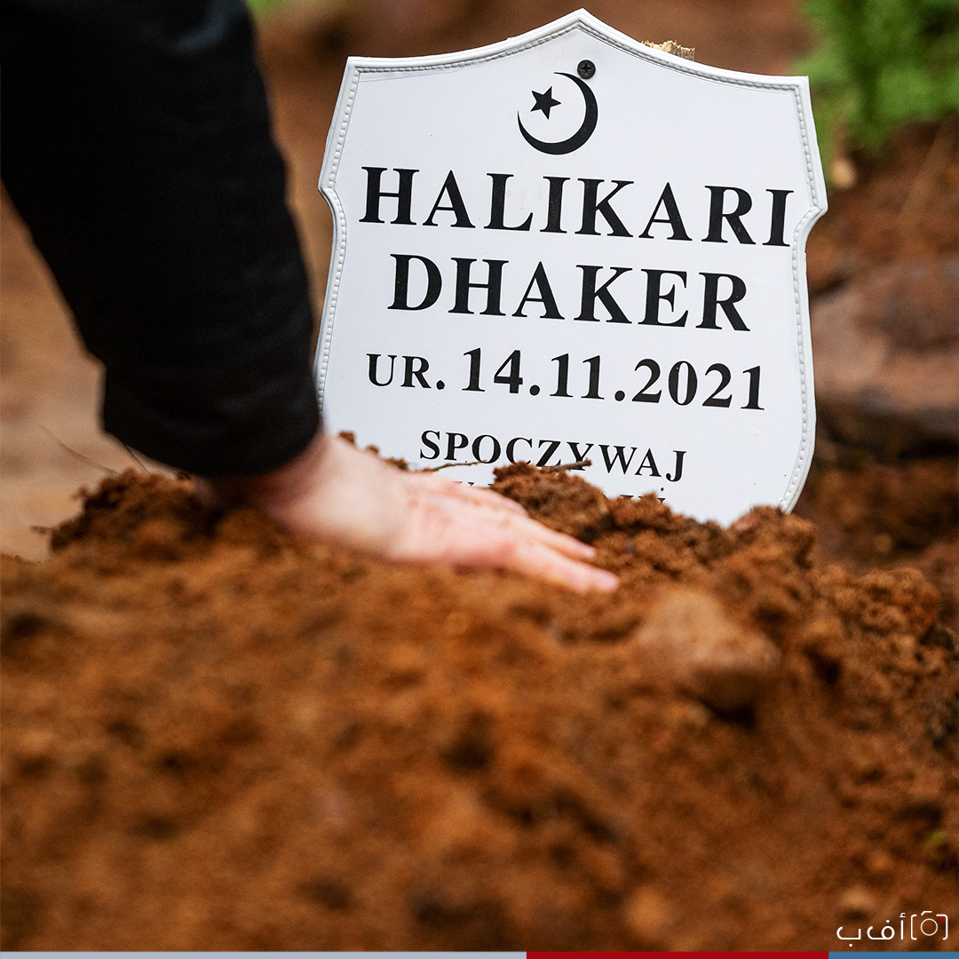 أفراد المجتمع المسلم المحلي دفنوا الجنين وعمره 27 أسبوعا في مقبرة إسلامية بعد أن ولدته مهاجرة عراقية ميتا إثر عبورها الحدود من بيلاروس إلى بولندا.