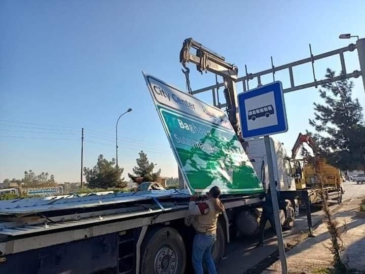 واقدمت بلدية كركوك على إزالة جميع القطع بعد موجة انتقادات واسعة في مواقع التواصل الاجتماعي لقطع الدلالة التي كتبت باللغتين الانكليزية والعربية.