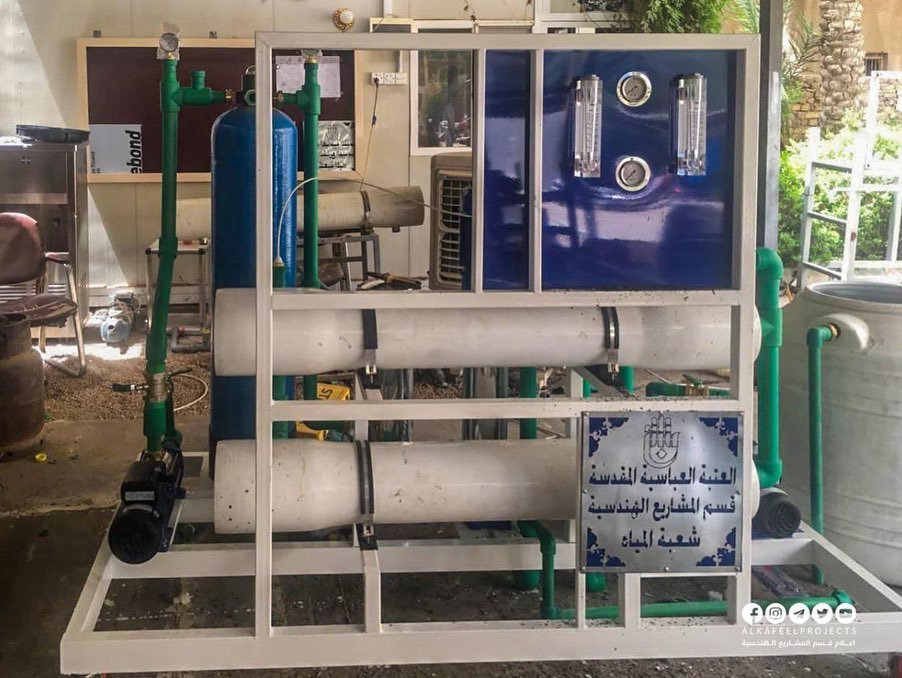 وذكرت شبكة الكفيل (الموقع الرسمي للعتبة) وتابعتها وكالة نون الخبرية  أنها كلّفت شعبة المياه التابعة لقسم المشاريع الهندسية في العتبة العباسية بتنفيذ وإنشاء محطة مياه R.O station بطاقة إنتاجيّة تبلغ 2000 لتر/ ساعة في قرية الشاطي في قضاء الهنديّة التابع لمحافظة كربلاء.