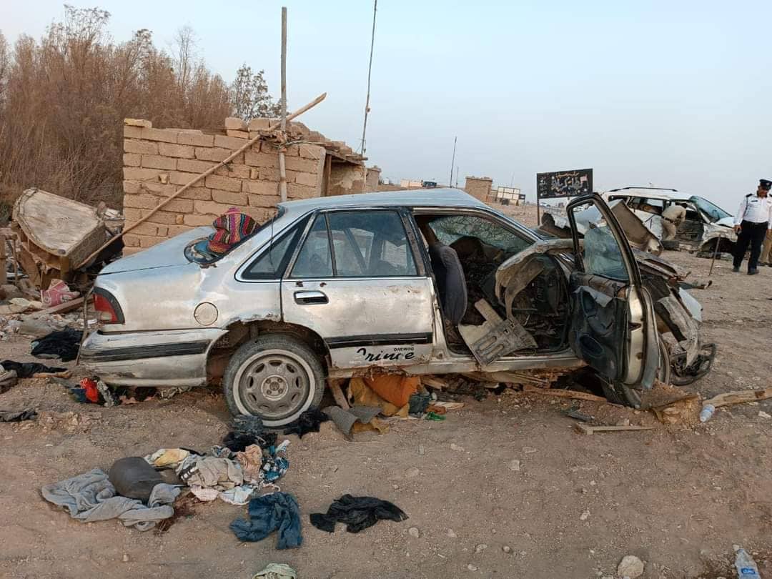 صرع عشرة اشخاص بحادث مروري مروع نتيجة تصادم مركبتين على طريق محافظة ذي قار جنوب العراق .