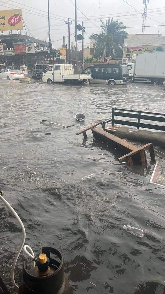غرقت أغلب شوارع النجف، جراء مياه الأمطار التي سقطت على المحافظة بشكل كثيف خلال اليوم الأحد.