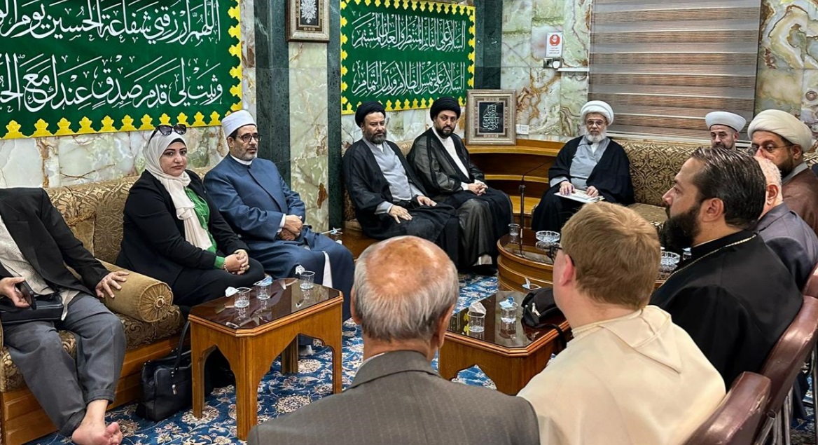 وقال مدير مؤسسة الحوار وبناء السلام السيد احسان صالح الحكيم لوكالة نون الخبرية  " كان لنا الشرف في المؤسسة التابعة للعتبة الحسينية المقدسة في عقد مؤتمر ترعاه العتبة الحسينية المقدسة تحت عنوان (حرية الرأي والعيش المشترك) دعونا اليه مجموعة من علماء المسلمين والمسيحيين من دول متنوعة، وربما لاول مرة يجتمع علماء من الازهر الشريف وجامعة الزيتونة العريقة وجامعة لبنان ومن جامعات متنوعة من كردستان العراق وصولا الى البصرة من مختلف المذاهب، وكذلك مجموعة من علماء الدين المسيحيين الذين يمثلون توجهات متعددة مثل ممثل الفاتيكان ومفتي سوريا وهو المستشار المسيحي، وشخصيات اخرى مهمة مثل الاب مكاريوس قلومي الذي يمثل اهم كنيسة في دمشق عاصمة سوريا، واجتمع كل هؤلاء العلماء في مدينة النجف الاشرف في المؤتمر، الذي كان الهدف منه تعزيز مفهوم التعايش السلمي بين ابناء المجتمعات بمختلف اديانهم، وتضمن المؤتمر ستة جلسات كل جلسة تتحدث عن محور معين، حققت للحضور اثراء فكري ومهم، ونظمت لهم جولة في العاصمة بغداد تضمنت زيارة مرقد الامامين الكاظمين ومرقد ابو حنيفة النعمان وبعض معالم بغداد، وتشرفنا اليوم بزيارة العتبتين المقدستين الحسينية والعباسية واللقاء بالمتولي الشرعي للعتبة الحسينية الشيخ عبد المهدي الكربلائي ".