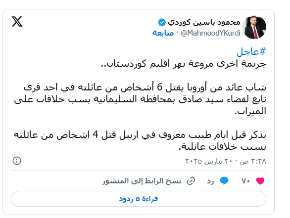عاد من أوروبا إلى العراق.. قتل أمه وأباه وأشقاءه وانتحر