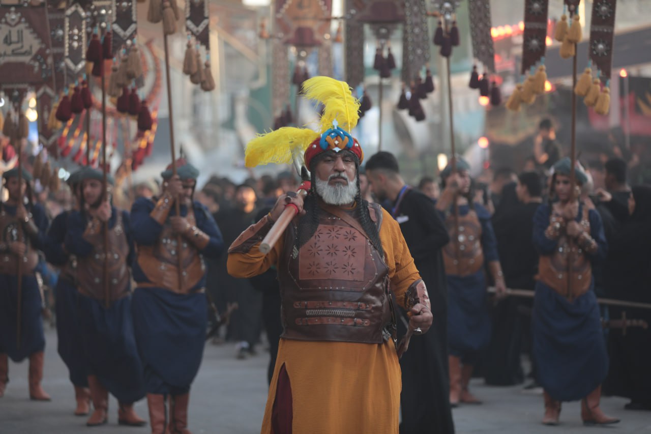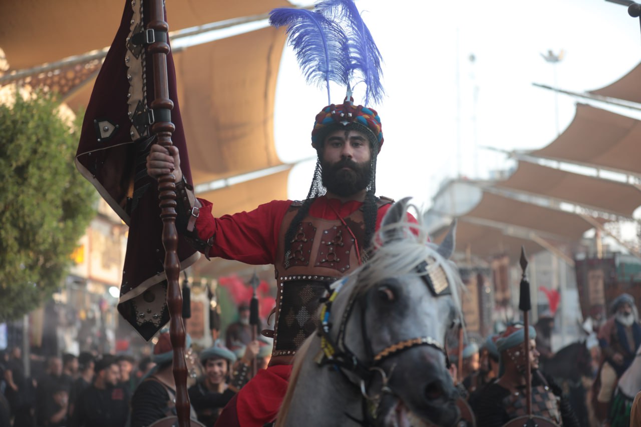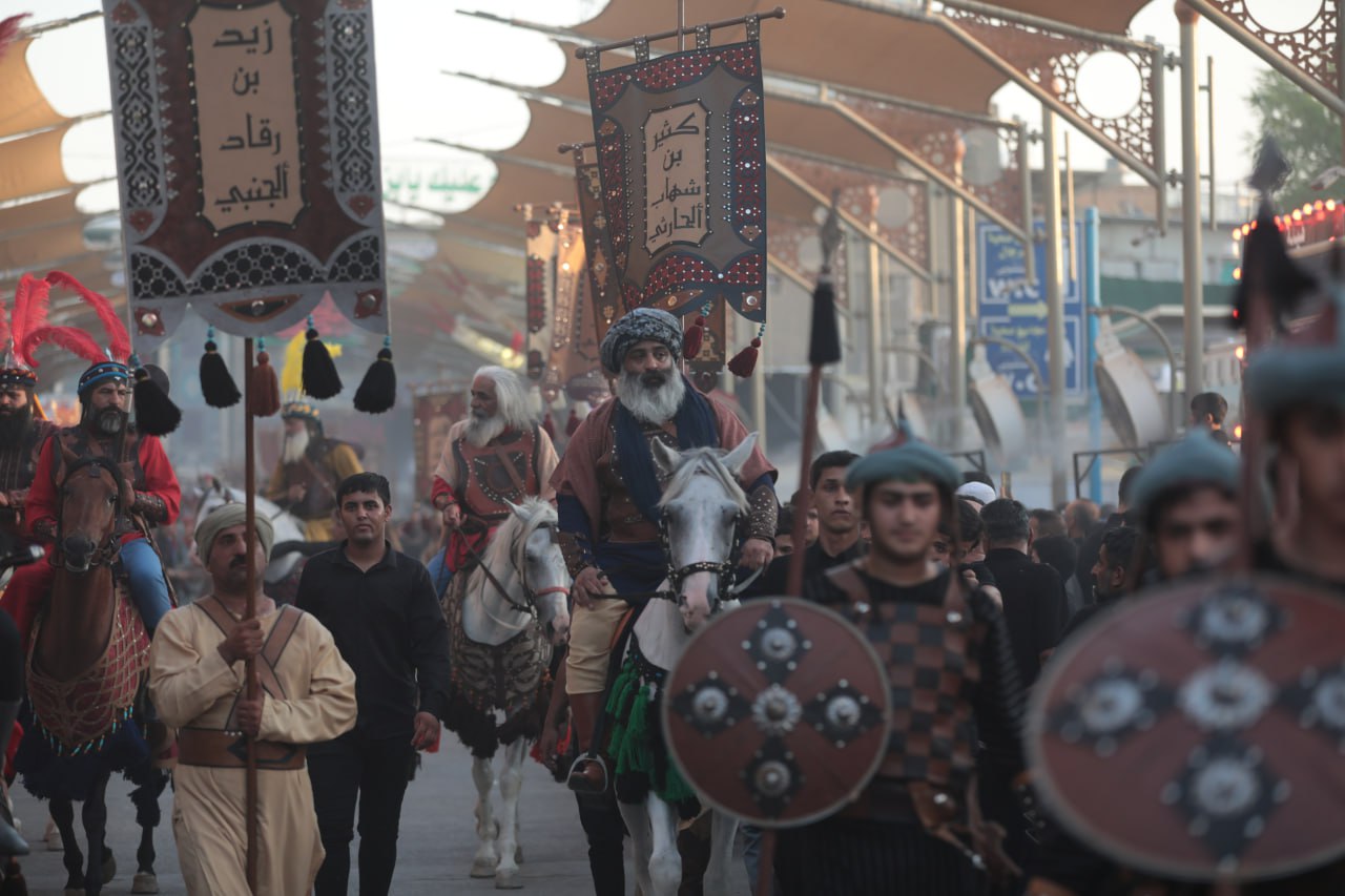 كما في كل عام يحرص الكربلائيون عبر مواكبهم وهيئاتهم الحسينية على تجسيد التحشيد العسكري لجيش الملعون يزيد وقياداته الظالمة التي لم ترع في الله حرمة لبيت رسوله الكريم، فنزلت مواكب التشابيه التي تجسد تلك الحوادث قبل وقوع المعركة تسير في شوارع المدينة القديمة قرب المرقدين الشريفين، يرتدي فيها الممثلون ملابس الحرب القديمة ويحملون من اكسسوارات المعركة مثل السيوف والخناجر والطبول والدروع والقلنسوات ما يولد لدى الناظر اجواء معركة الطف الخالدة.