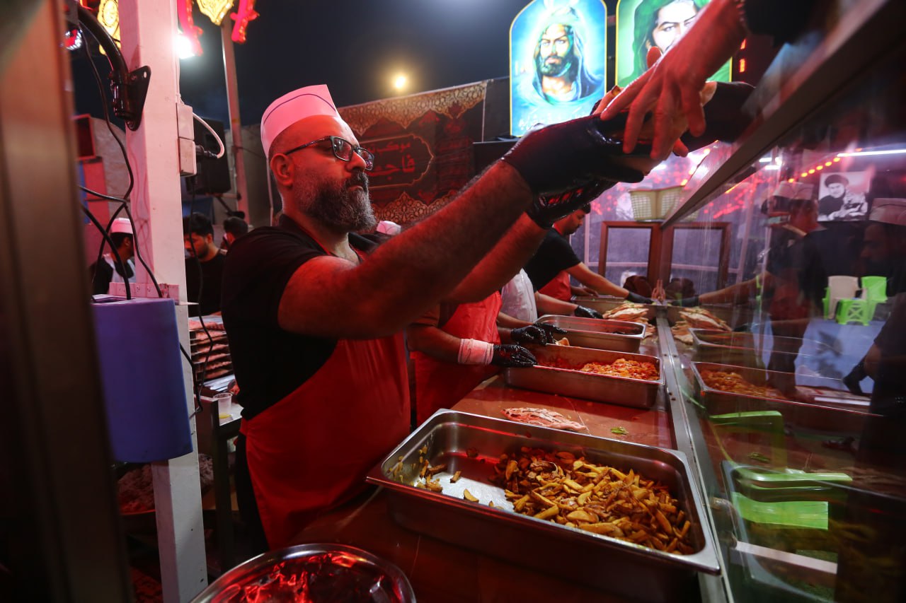 يلفت الديكور الذي امتاز به موكب "فاجعة سامراء" الانظار حيث يخيل الى الناظر انه امام مطعم حديث للوجبات السريعة، حيث الطاولات والانارة والمكائن والزي الموحد للخدام وتوزيع المهام المنسق بدقة ونوعية الطعام اللذيذة، هذا الموكب وبسبب ساعات سير "المشاية" من النهار الى الليل وسط الاجواء شديدة الحرارة التي يشهدا العراق عموما والبصرة خصوصا، يبدأ عمله من الليل الى ساعات الفجر الاولى ويقدم الاف الوجبات السريعة للزائرين واكلات مشهورة وعصائر ومياه.