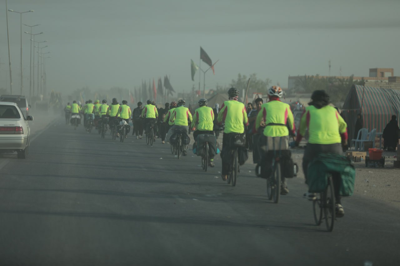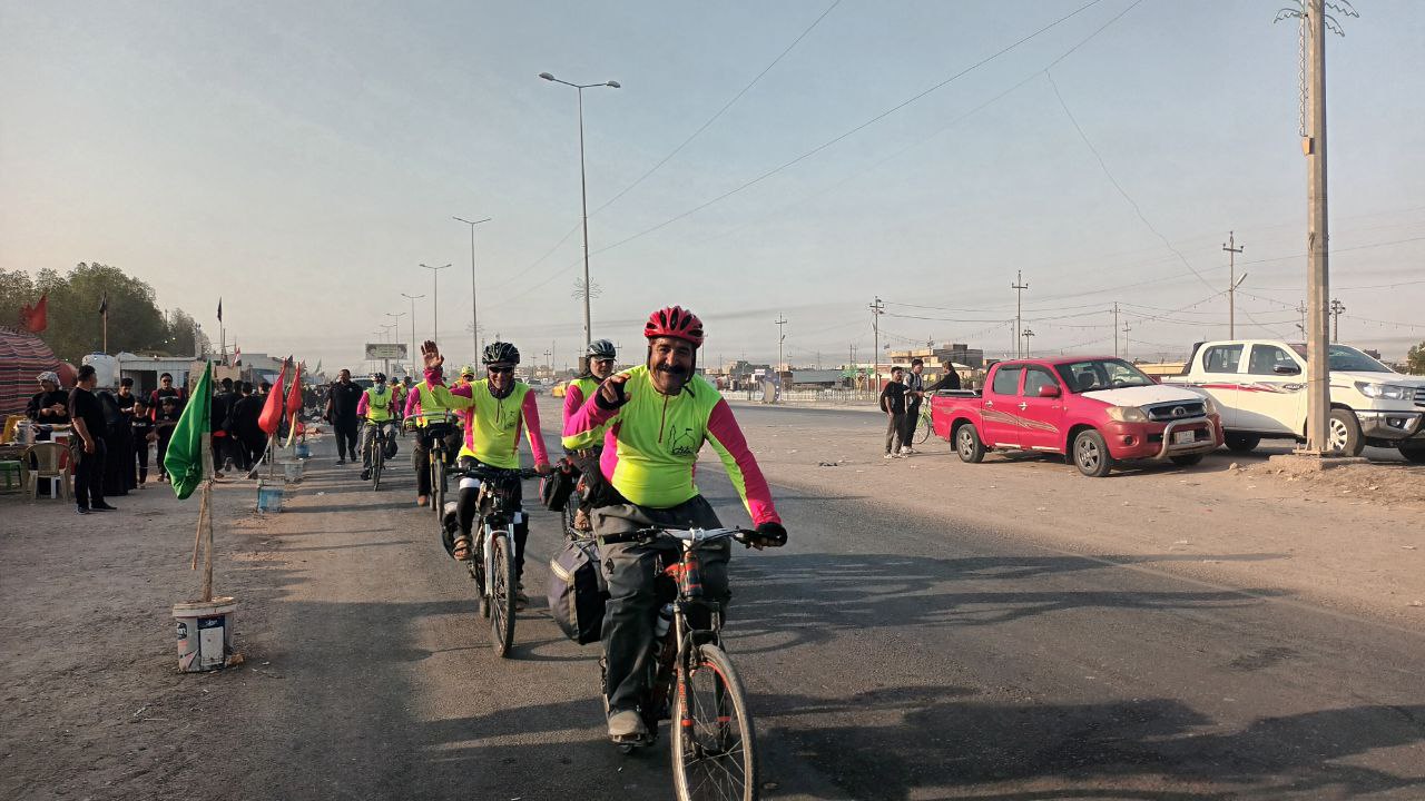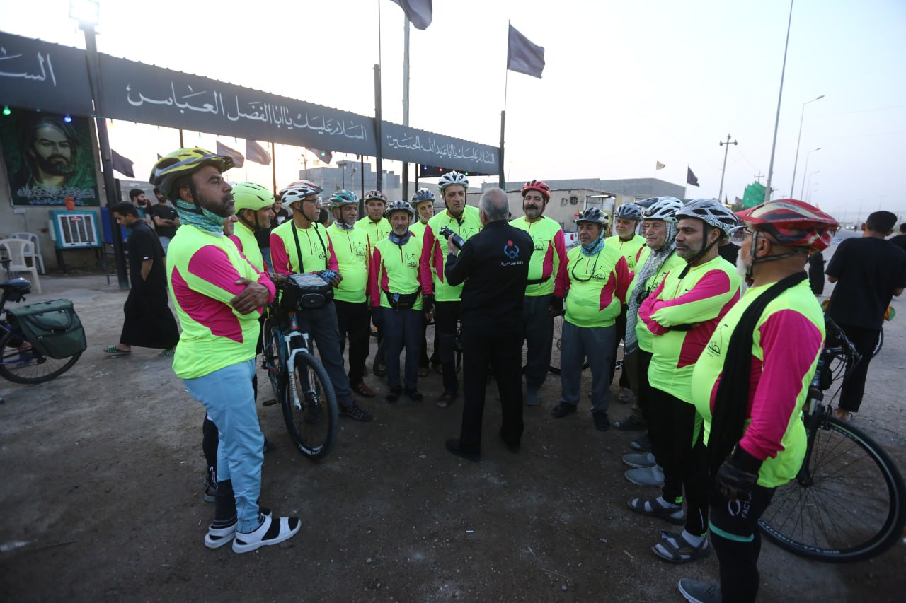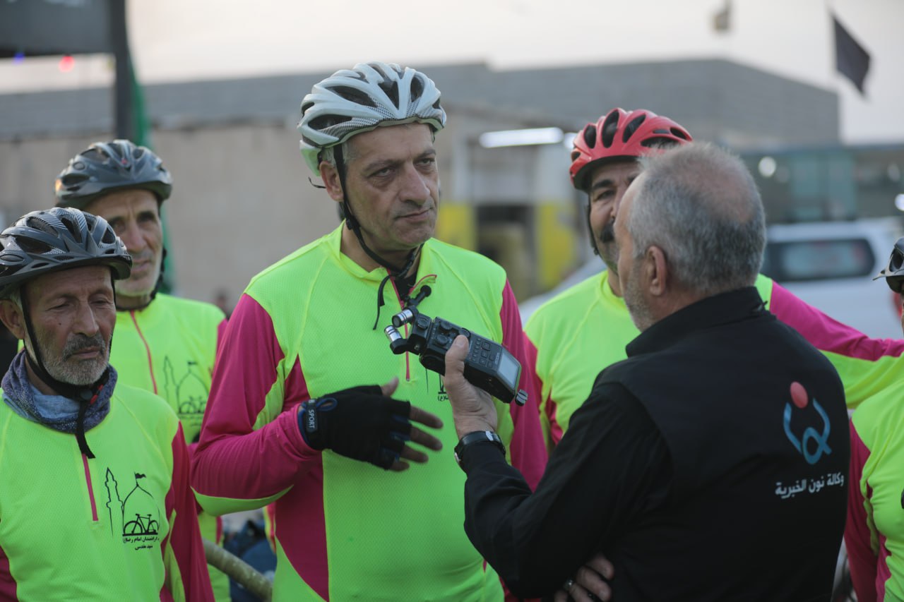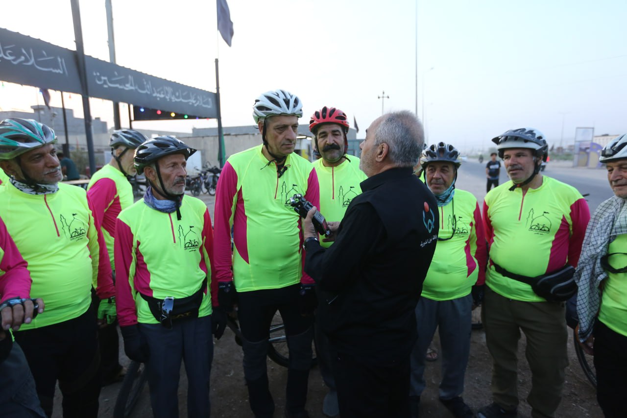 هؤلاء الشيبة يقودهم السيد "محمود حاجيان" الذي يتكلم العربية ويعرف مسالك الطرق للمراقد المقدسة في العراق يشرح رحلتهم لوكالة نون الخبرية قائلا ان" عددنا هو (20) زائر ايراني جئنا من مدينة مشهد المقدسة للمشاركة في الزيارة الاربعينية بمدينة كربلاء المقدسة وزيارة جميع المراقد المقدسة في العراق"، مشيرا الى انهم" بدأنا بخمسة دراجين وازداد العدد الى (15) ثم وصل عددنا الى (40) دراج بعد ان رغب الكثير بالمشاركة معنا، ونأتي من مدينة مشهد الى منفذ الشلامجة الحدودي في محافظة البصرة بالسيارات، ثم نمتطي دراجاتنا الهوائية داخل الحدود العراقية وانطلقنا قبل يومين اي يوم السبت الماضي من منفذ الشلامجة لنصل اليوم الاثنين الى "قضاء الدير" احد اقضية محافظة البصرة"، مؤكدا اننا " جئنا الى العراق لنشاركوا في زيارة الاربعين المباركة للمرة السابعة على التوالي، وجميعنا نعمل خداما في مرقد الامام علي بن موسى الرضا (عليه السلام) في مدينة مشهد المقدسة ونحرص على ممارسة الرياضة لديمومة بناء الجسم السليم وما تحتاجه خدمة زوار الامام الرضا من قوة لاداء المهام المكلفين بها، ومن افضل الرياضيات هي قيادة الدراجات الهوائية، وفي تلك الرحلة فائدتان هي نيل الاجر والثواب لزيارة الامام الحسين (عليه السلام) في اربعينيته والعشق الحسيني ونصرته، وممارسة الرياضة الشاقة لبناء الجسم السليم".