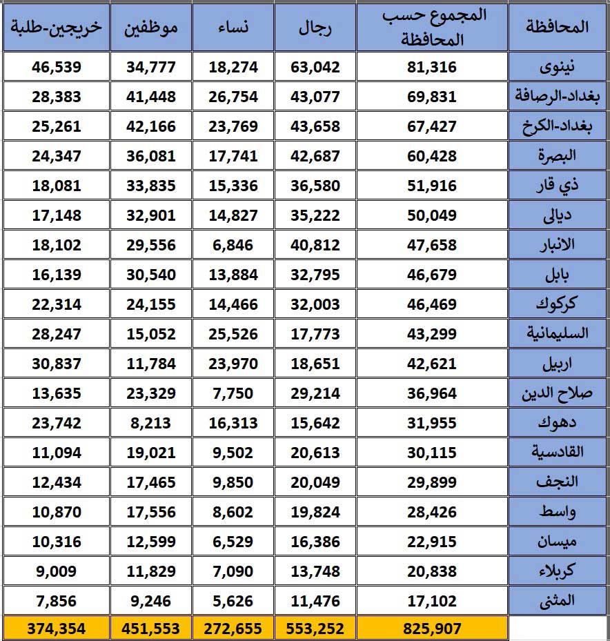 أعلنت المفوضية العليا المستقلة للانتخابات العراقية عن آخر إحصائية للمتقدمين للعمل كموظف في مراكز الاقتراع لانتخابات مجلس النواب.