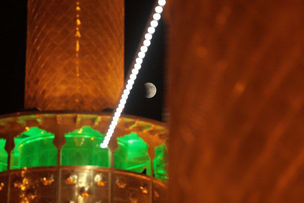 وثقت عدسات كاميرات وكالة نون الخبرية الفوتوغرافية والفيديوية مساء اليوم الاحد السابع من شهر ايلول الجاري الموافق الرابع عشر من شهر ربيع الاول الهجري منذ بداية الخسوف عند الساعة السابعة والنصف مساء تقريبا ولغاية حصول الخسوف الكلي قبل الساعة التاسعة مساء، وقد اقيمت صلاة الآيات في العتبتين المقدستين ورفع المصلون بعدها اكفهم مع قراءة الادعية المخصوصة الواردة عن ائمة الهدي من اهل بيت النبوة ( سلام الله عليهم اجمعين).