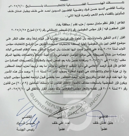الهيئة القضائية تقبل طعن ظافر العاني وتعيده إلى السباق الانتخابي الأربعاء 10 ايلول 2025 سياسية 865 مشاهدة الهيئة القضائية تقبل طعن ظافر العاني وتعيده إلى السباق الانتخابي قررت الهيئة القضائية للانتخابات، اليوم الأربعاء، إعادة المرشح عن حزب تقدم في العاصمة بغداد ظافر العاني الى السباق الانتخابي. كلمات مفتاحية بغداد انتخابات السب المرشح طعن بغدا الهيئة القضائية حزب تقدم التعليقات (0) لا توجد تعليقات بعد. كن أول من يعلق! اسمك البريد الإلكتروني تعليق إرسال التعليق تعليقاتكم والموضوعات الأكثر تداولاً أكثر المواضيع قراءة عرض الكل الأكثر قراءة اليوم الأسبوع الشهر سنة 1 إقتصادية تعرف على أسعار صرف الدولار أمام الدينار العراقي 1785 مشاهدة --منذ 21 ساعة 2 إقتصادية الدولار يرتفع مع إغلاق الأسواق في العراق 965 مشاهدة --منذ 19 ساعة 3 سياسية ضجة بمواقع التواصل بعد نشر الوقائع العراقية قرارات تصنف حزب الله والحوثيين "منظمات ارهابية" 496 مشاهدة --منذ 24 ساعة 4 اخبار محلية يباشر بتنفيذه في (27) رجب.. ممثل السيستاني يطلع على تصاميم اكبر صحون التوسعة في العتبة الحسينية 469 مشاهدة --منذ 16 ساعة 5 سياسية بعد جدل واسع.. السوداني يوجّه بالتحقيق في قرار تجميد أموال "حزب الله" و"الحوثيين" 383 مشاهدة --منذ 19 ساعة 1 إقتصادية مع إغلاق السوق.. تعرف على أسعار صرف الدولار في العراق 2184 مشاهدة --السبت 29 تشرين الثاني 2025 2 إقتصادية ارتفاع أسعار صرف الدولار الأمريكي أمام الدينار العراقي 2061 مشاهدة --السبت 29 تشرين الثاني 2025 3 اخبار محلية تخفيضات كبيرة لمدة اسبوعين .. مستشفى الامام زين العابدين (ع) في كربلاء يطلق مبادرة (كوثر العصمة) الطبية 1937 مشاهدة --الجمعة 28 تشرين الثاني 2025 4 إقتصادية أسعار صرف الدولار مع إغلاق السوق مساء الأربعاء في العراق 1896 مشاهدة --الأربعاء 03 كانون الأول 2025 1 سياسية نتائج اولية :الفائزون في مقاعد مجلس النواب بكربلاء المقدسة 8405 مشاهدة --الأربعاء 12 تشرين الثاني 2025 2 سياسية بالارقام: النتائج الأولية للتصويت بالانتخابات النيابية في محافظة نينوى 6565 مشاهدة --الثلاثاء 11 تشرين الثاني 2025 3 اخبار محلية اسماء جديدة تشكل 11 فائز بانتخابات 2025 في محافظة كربلاء المقدسة 4255 مشاهدة --الخميس 13 تشرين الثاني 2025 4 سياسية مجلس بغداد يُفعّل نظام التوصيل المنزلي للنفط الأبيض 3979 مشاهدة --الخميس 20 تشرين الثاني 2025 5 سياسية وكالة نون تنشر النتائج الاولية للقوائم الانتخابية الفائزة في محافظة واسط 3740 مشاهدة --الأربعاء 12 تشرين الثاني 2025 6 منوعة طقس العراق.. أمطار رعدية وانخفاض في درجات الحرارة 3567 مشاهدة --الجمعة 14 تشرين الثاني 2025 1 اخبار محلية خلال زيارته لمشروع صحن العقيلة.. ممثل السيد السيستاني يوعز بتخصيص مساحة (5) الاف متر على اسطح البنايات للزائرين 18322 مشاهدة --السبت 13 ايلول 2025 2 سياسية مكتب السيد السيستاني ينشر إمساكيات شهر رمضان المبارك للمحافظات العراقية لعام 1446هـ (2025م) 13584 مشاهدة --الأربعاء 19 شباط 2025 3 لقاءات *محمد الصواف: عدسة توثق الحقيقة وتنقل قصص الإنسانية في قلب الأزمات* 12252 مشاهدة --الأحد 30 آذار 2025 4 لقاءات منها الخاصة وفوق الكبرى والكبرى.. حيدر زيني.. طبيب أجرى (51) عملية في (28) ساعة متواصلة بمستشفى السفير 10786 مشاهدة --الثلاثاء 27 آيار 2025 5 اخبار محلية كربلاء تحدد تسعيرة "أمبير" المولدات الأهلية لشهر حزيران 2025 9456 مشاهدة --الثلاثاء 27 آيار 2025 6 تحقيقات بينَ زَخَّاتِ الرَّصاصِ وَدُموعِ الأهلِ.. قِصةُ شهيدٍ كَتبَتْ كربلاءُ خاتِمَتَهُ 8897 مشاهدة --الأربعاء 02 نيسان 2025 آخر التعليقات 1 محمد فارس ريان التعليق : الخيانة لها ناسها ... الموضوع : القصة الكاملة لعملية اعتقال طه ياسين رمضان "الجزراوي" 2 محمد فارس ريان التعليق : الخيانة لها ناسها ... الموضوع : القصة الكاملة لعملية اعتقال طه ياسين رمضان "الجزراوي" 3 RonaldNet التعليق : Ребята, подскажите, кто как решал проблему, когда замена замка после утраты ключей спб в СПб? ... الموضوع : سندات مالية جديدة.. الفائدة ا