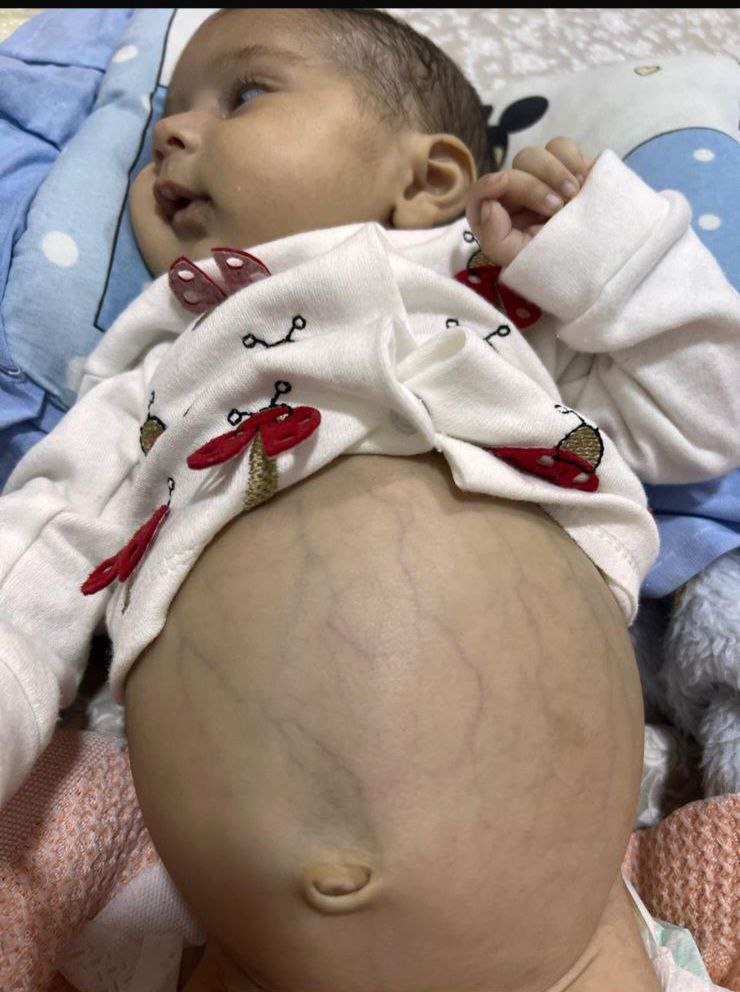 يسرد "حيدر نوري احمد" والد الطفلة "فدك" من قضاء "طوز خورماتو" في محافظة صلاح الدين والبالغة من العمر حاليا (7) اشهر حالتها لوكالة نون الخبرية بقوله ان "والدتها اخبرتني بعد ان بلغ عمرها (40) يوميا ان بطنها صار فيها انتفاخ، وظننا في بداية الامر انها حالة طبيعية يتعرض لها اغلب الأطفال المولودين حديثا عندما يصابون بالغازات او بعض الامراض الباطنية، فذهبنا بها الى محافظة كركوك القريبة على قضاء "الطوز" وراجعنا مستشفى اهلي فاجري لها فحص السونار الاشعاعي واخبرونا ان لديها تضخم في الكبد اي انها مصابة بمرض باطني في الجهاز الهضمي الدقيق، فاخبرنا الطبيب المتخصص ان علاجها في مستشفى حماية الطفل بمدينة الطب بالعاصمة بغداد، ومكثنا لمدة أسبوع وأجريت لها فحصوات اشعاعية بالرنين والسونار والمفراس، وظهرت النتيجة انها مصابة بورم سرطاني، وبسبب الزخم الكبير للمرضى الأطفال قررنا الانتقال الى مستشفى آخر فاقترح علينا اقاربنا السفر الى تركيا او ايران لعلاجها ولكن العامل المادي وقف عائقا امامنا كوننا من عائلة محدودة الدخل، وبعد ان يأسنا من علاجها وعن طريق احد العاملين في مؤسسة وارث الدولية لعلاج الأورام من أهالي مدينتا جئنا الى هنا والبكاء كان رفيق دربنا بعد ان اصبح عمرها حوالي شهرين".