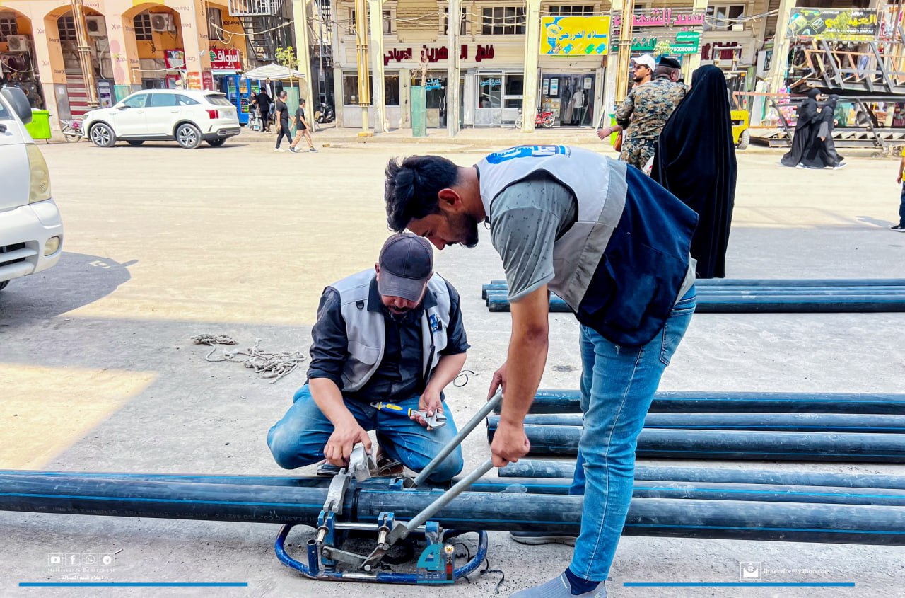 واوضح ان" القسم انجز مشروعا جديدا بالتعاون مع اقسام اخرى معنية لايواء الزائرين في منطقة التعليم عبر نصب (35) خيمة كرفانية مساحة الواحدة منها (1000) متر مربع وزودت بمجاميع صحية تم تنصيبها قرب الخيم وربطت بشبكتين جانبين ورئيسة وزودت بخزاني ماء وكهرباء بالتعاون مع الاقسام المختصة، ووصلت طاقة تلك الخيام الاستيعابية الى اكثر من (30) الف زائر، كما تمكنت ملاكات القسم من تنفيذ اعمال اخرى لدعم مدارس كربلاء مثل مدرسة المثنى الدولية، واعدادية الثورة للبنين في منطقة العباسية، من خلال نصب محطات ماء (RO) بارد تعمل على الطاقة الشمسية المتجددة، وتزويدها ببرادات ماء تخضع الى متابعة ورقابة القسم، وكذلك وحسب توجيهات المتولي الشرعي للعتبة الحسينية المقدسة الشيخ "عبد المهدي الكربلائي" يقدم القسم الدعم لمختلف المؤسسات الحكومية في مجالات طارئة، ومنها التعاون مع مديريات الشرطة، والبطاقة الوطنية، والجوازات، وشهادة الجنسية، ومديرية الشؤون، والتسجيل العقاري، وبعض المستشفيات، كما زودنا المواكب الحسينية خلال الزيارات المليونية بالماء الخام وماء (RO) البارد والثلج، لمساعدتها على توفير خزين الماء وتقديم الخدمات للزائرين، بعد ان حصل اشكال في تجهيز الماء ببعض المناطق وبشكل يومي عبر سيارات حوضية تابعة للعتبة الحسينية المقدسة، حيث كان منتسبوا القسم يعملون على مدار الساعة وخارج اوقات الدوام الرسمي، لصعوبة حركة الاليات مع ذروة الزيارة والزخم البشري، ويلجأ منتسبونا الى توزيع الماء والثلج عند صلاة المغرب او بعد منتصف الليل او مع ساعات الفجر ليتمكنوا من الوصول الى المواكب".