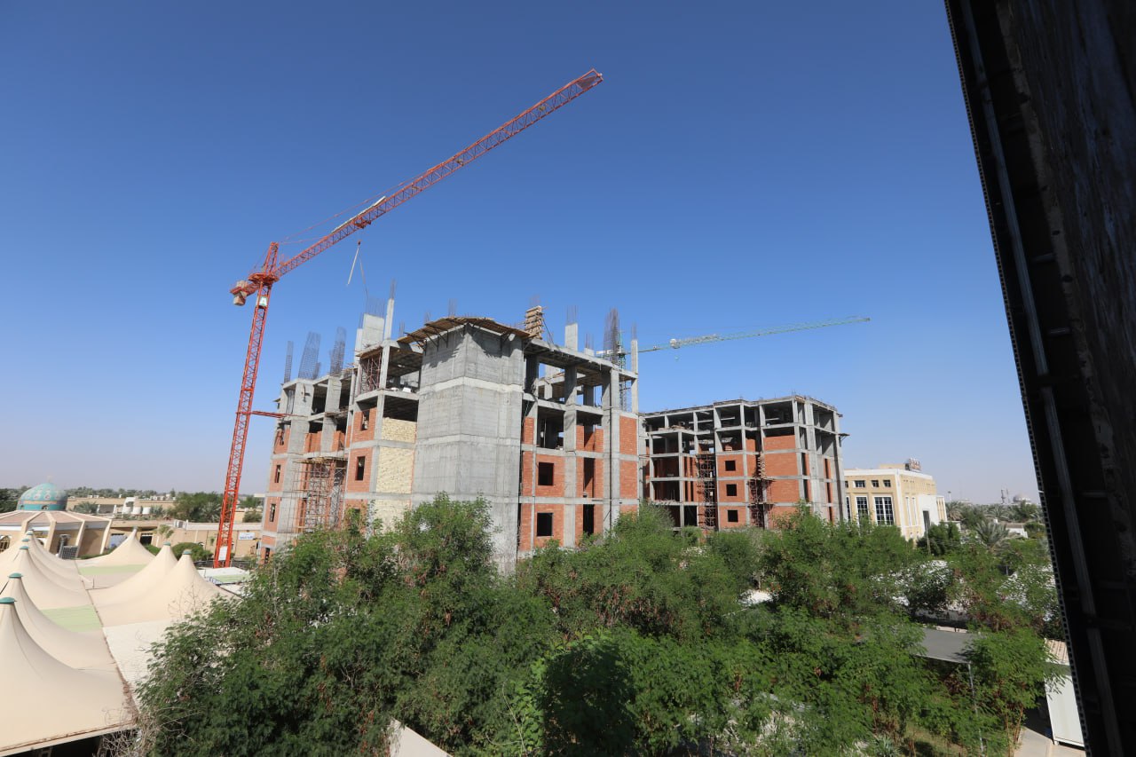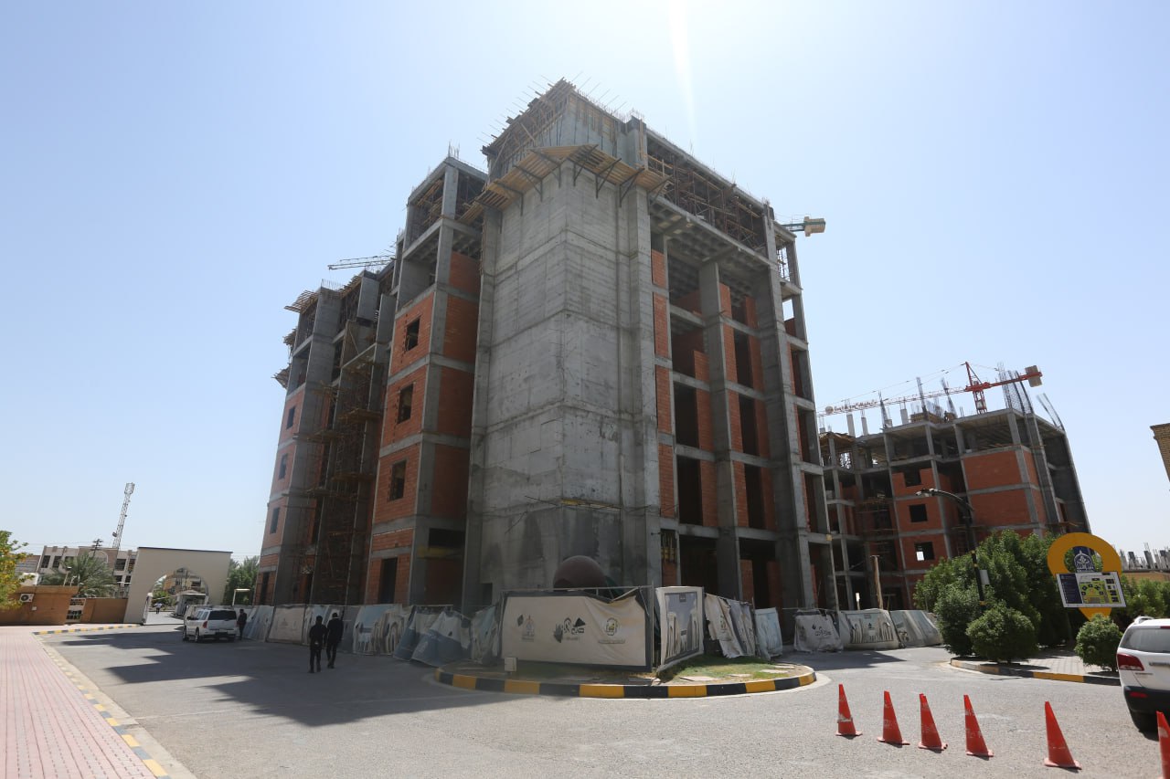 واوضح ان "العمل يجري الآن في تنفيذ البناء الهيكلي الذي يعطي قوة تحمل عالية، مما يضمن استقرار المباني تحت الاحمال المختلفة، ويتيح إنشاء مساحات داخلية واسعة وخالية من الاعمدة، ويزيد من مرونة التصميم الداخلي، ويشيد السقف باسلوب ((Slab Waffle، الذي يسهم في زيادة متانة المبنى وتوزيع الاحمال بشكل متساوي، كما يمنح مظهرا هندسيا جذابا ويعزز من الجمال الداخلي للمبنى، وتنفذ واجهة البنايتين بمادتي (الجف قيم والمرمر) التي تعطي مقاومة عالية للعوامل البيئية مثل الرطوبة والحرارة، وتزيد من عمر الواجهة، وتمنح لمسة تصميمية راقية وجميلة للمباني، وتعكس الذوق الرفيع والفخامة، وكذلك التقطيع يتم باستخدام البلوك العازل للحرارة والصوت"، مشددا بالقول ان" البنايتان المتقابلتان المتناظرتان تعتبر من التحف المعمارية التي تتميز بالعديد من المميزات الهندسية والمعمارية، في كربلاء المقدسة"، مبينا ان" من مقتربات المشروع وجود جسر رابط بين البنايتين، طوله (33) متر، وعرضه (8) امتار، وارتفاعه (16) متر، ويوفر وسيلة تنقل مريحة وسريعة بين البنايتين، ويسهل حركة الطلبة والاساتذة والموظفين، ويربط الاقسام المختلفة بين البنايتين، ويحتوي على تكييف مركزي ومنظومات متكاملة، ويتيح الجسر للمستخدمين التمتع بإطلالة بانورامية على الحرم الجامعي والمناطق المحيطة، مما يضيف لمسة جمالية وتجربة فريدة للطلبة والعاملين، وصمم الجسر بشكل يتناغم مع الطراز المعماري للبنايتين، حيث يستخدم مواد مماثلة لتلك المستخدمة في الواجهات، مثل الجف قيم والمرمر، ليضفي توازنًا جماليا، ويتميز بوجود نوافذ واسعة تسمح بدخول الانارة الطبيعية، مما يوفر بيئة مشرقة ومريحة للعبور".