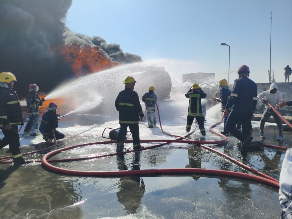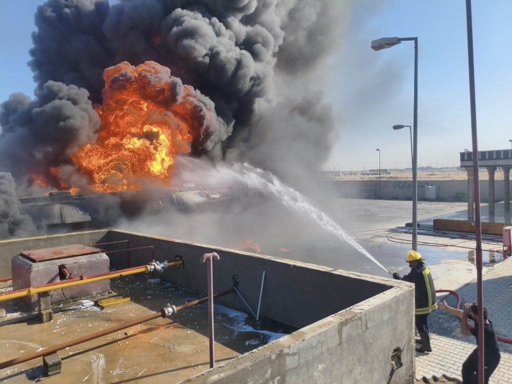 وأضاف البيان أن “فرق الدفاع المدني استنفرت جهودها وطوقت موقع الحريق، وعزلت الصهريج المحترق، وأنهت أعمال الإخماد والتبريد دون تسجيل أي إصابات بشرية”.