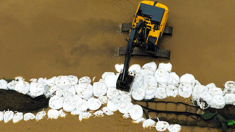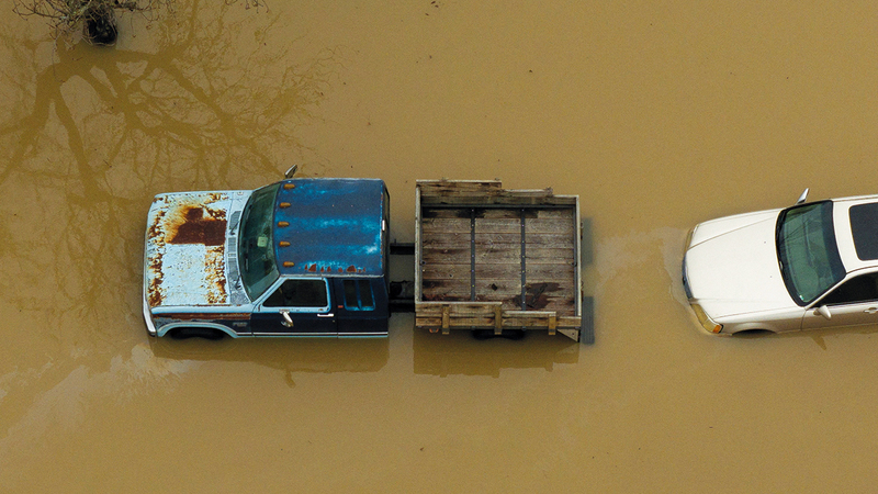 وحتى أمس، جرى تسجيل وفاة واحدة لرجل قاد سيارته لما بعد العلامات التحذيرية في منطقة مغمورة بالمياه، وانغمرت بعض الطرق السريعة الرئيسة بمياه الفيضانات بشكل كامل، بينما تضررت طرق أخرى، في وقت غمرت المياه مناطق بأكملها.