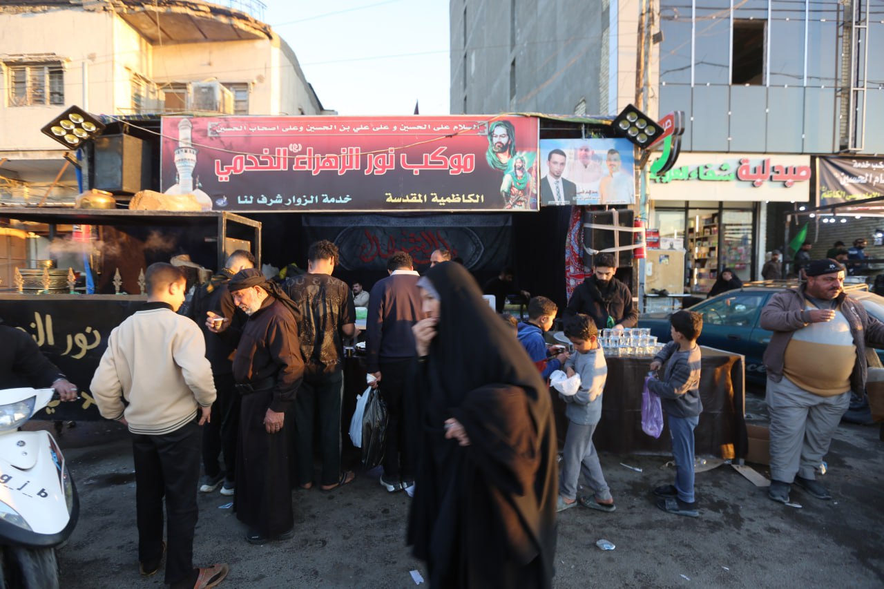 يتصدى للحديث كفيل الموكب "عباس هاشم ذياب" الذي خط بياض الشيب لوحة على لحيته ورأسه هذا "الشايب" الذي عشق محمـد وآل محمـد منذ نعومة اظفاره والتحق بركب خدمتهم يقول لوكالة نون الخبرية ان" حكايتي مع العزاء الحسيني بدأت عندما كان عمري (9) سنوات حيث كنت امثل دور "اولاد مسلم بن عقيل" في واقعة الطف الاليمة مع موكب الانباريين وهي المنطقة التي تسكنها عائلتي والذي كان كفيله المرحوم الحاج "ناجي الانباري" واستمريت في الخدمة الى سبعينيات القرن الماضي، وفي منتصف السبعينيات منعت الشعائر الحسينية بشكل صارم ورغم الخوف والرعب واستفزازات جلاوزة النظام من البعثيين والامن حيث دخلوا الى بيوتنا وافرغوا الطعام على الارض اكثر من مرة، لكننا لم نتركها وبقينا نحييها بمختلف الطرق داخل بيوتنا، بل عمدت في بعض السنوات عندما منعت المواكب في كربلاء المقدسة الى حمل الطعام المعد في سيارة "بيكب" وتغطية الطعام بمحاصيل الخضر والفواكة والذهاب الى كربلاء ومعي نساء من عائلتي لتوزيعها على الزائرين والتنقل من مكان الى آخر بسرعة تفاديا لعيون السلطة الغاشمة، وكان معي صديقي "ابو صادق" يفعل نفس العمل بسيارته وما زال الى اليوم خادما لاهل البيت"، مشيرا الى ان" الخدمة الحسينية ليست وليدة اليوم بل ان جذور عائلاتنا في الكاظمية تمتد الى عمق تاريخي ومن اجداد اجدادنا تعلمناها وعملناها الى اولادنا واحفادنا بنين وبنات، لان بيوتنا تزخر بالمجالس العزائية النسائية والطبخ والخدمات للزائرات والمعزيات".