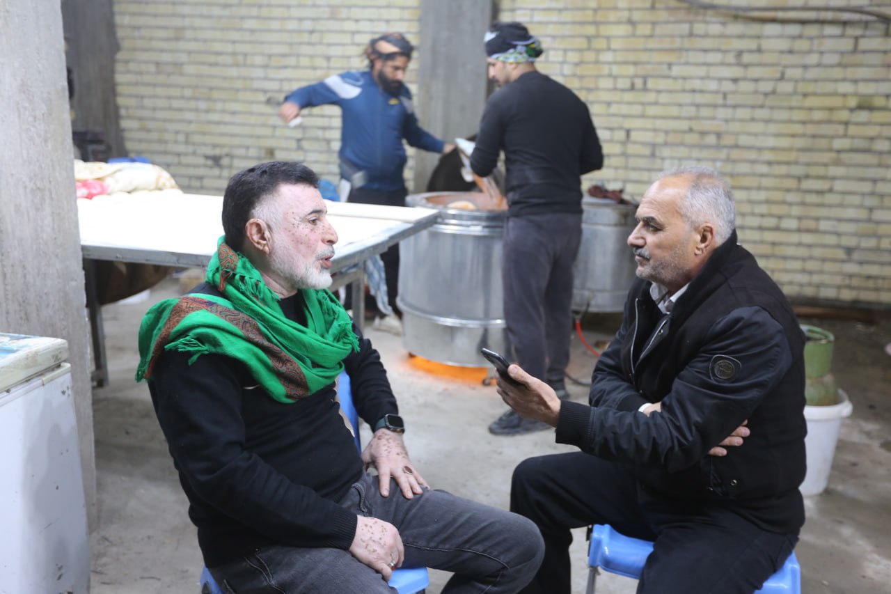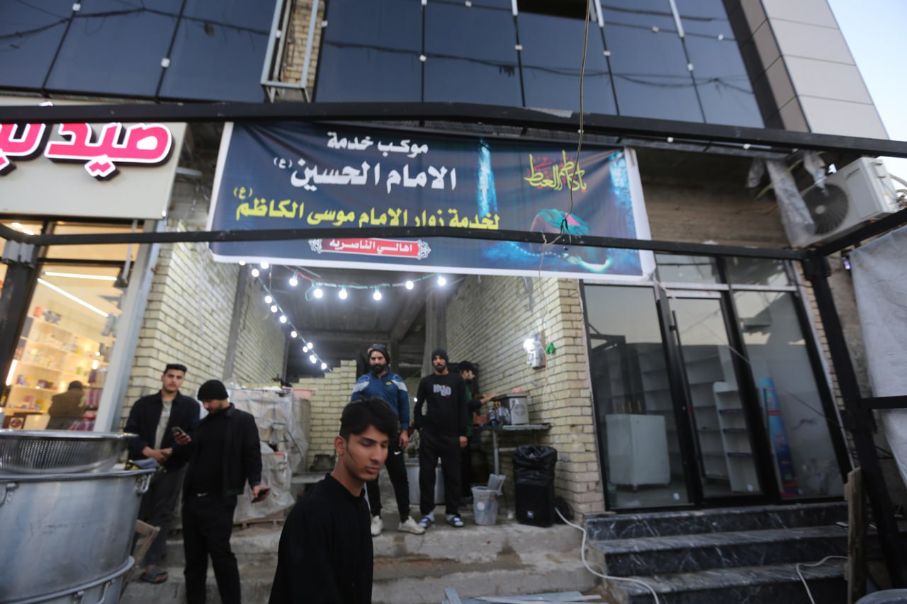 ويبين ان "انطلاق خدمتنا كان في كربلاء المقدسة في شارع النجارين وكان موكبنا اسمه موكب (المختار) وموكب خدمة الامام الحسين (عليه السلام) تفرع منه بعد توسع الخدمة، وكنا نجلب معنا من (55 ــ 60) بعير لننحرها ونعدها طعاما للزائرين وكان موكبنا يسمى موكب (اهل البعران) لكثرة ما ننحر فيه ونطعم الناس، بمعدل نحر من (3 ــ 5) بعران يوميا"، مؤكدا ان "الخدمة توسعت وانتقلت الى الكاظمية في ذكرى استشهاد الامامين الكاظم والجواد (عليهما السلام)، وكان مجيئنا عن طريق شباب من اهالي الناصرية يعملون في النقليات بمدينة الكاظمية المقدسة، بعد ان تعرفوا على صاحب هذه العمارة التي هي قيد الانشاء الآن ونقيم فيها العزاء والخدمة، ويقدم الخدمة في الموكب (20) خادما كلهم من ابناء مدينة الناصرية، وكنا نبحث عن محال تجارية لتأجيرها واقامة العزاء فيها الا ن صاحب العمارة عرض علينا استخدامها لاقامة مواكب الخدمة، وجئنا في اول عام (10) خدام فقط، وجلبنا جميع مواد ومعدات الطبخ ومنها (7) عجول وباقي المستلزمات من محافظة ذي قار، وقدمنا وجبات الطعام باعداد قليلة في اول ايام العزاء، ومنذ ثلاثة ايام نقوم بنحر اثنان من العجول لنطعم الزائرين ونعد الكباب المشوي واللحم مع التمن والمرق، ونقدم وجبتي الغداء والعشاء لكن باعداد كبيرة جدا تصل الى الاف الوجبات ويصل وقت توزيع الوجبة الواحدة الى ثلاث ساعات متواصلة، وعند اشتداد ذروة الزيارة نضاعف اعداد الوجبات".