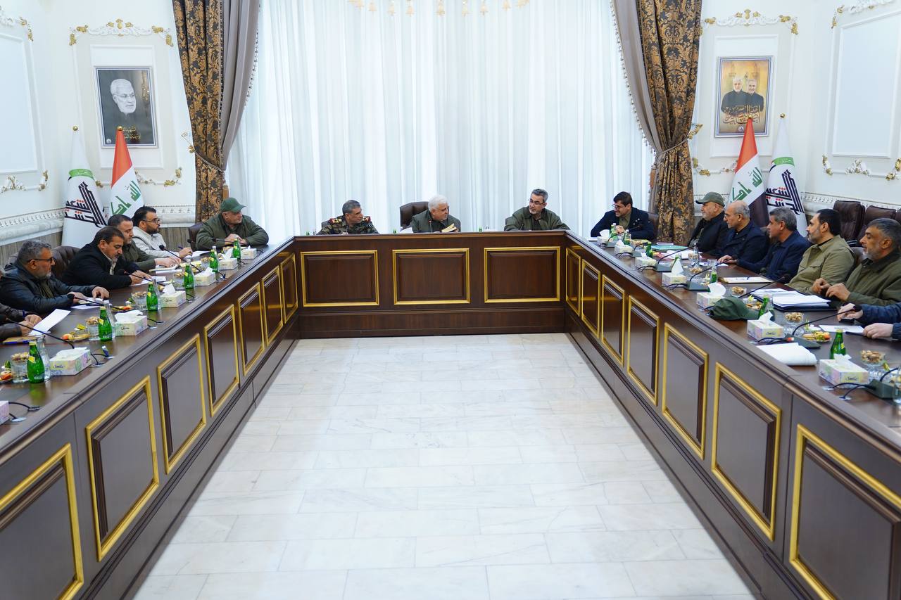 وقالت هيئة الحشد الشعبي، في بيان تلقته وكالة نون الخبرية، إن "رئيس هيئة الحشد الشعبي، فالح الفياض، ترأس في مكتبه ببغداد، اجتماعاً موسعاً، ضم رئيس الأركان والأمين العام وعدداً من قيادات الحشد الشعبي".