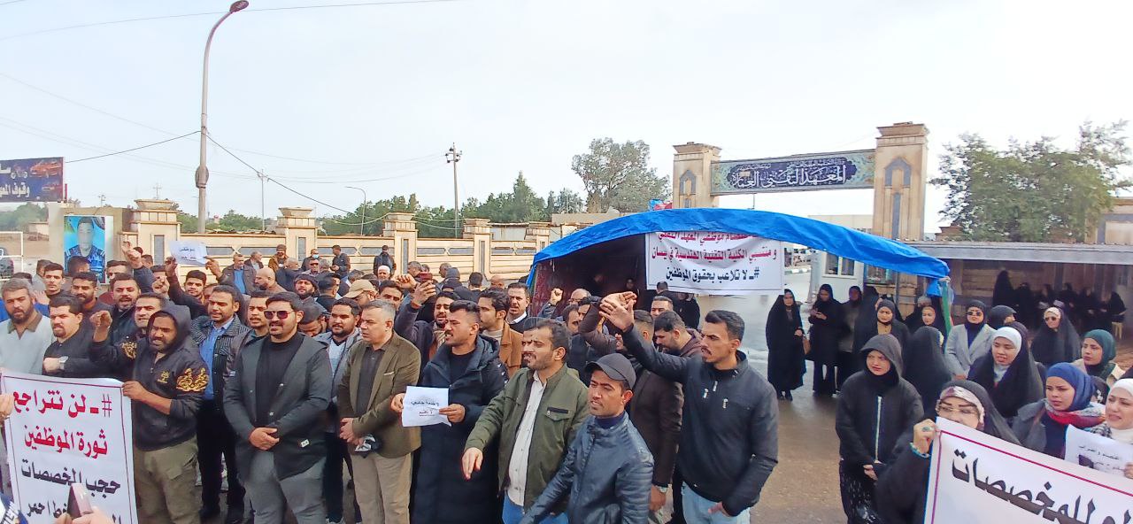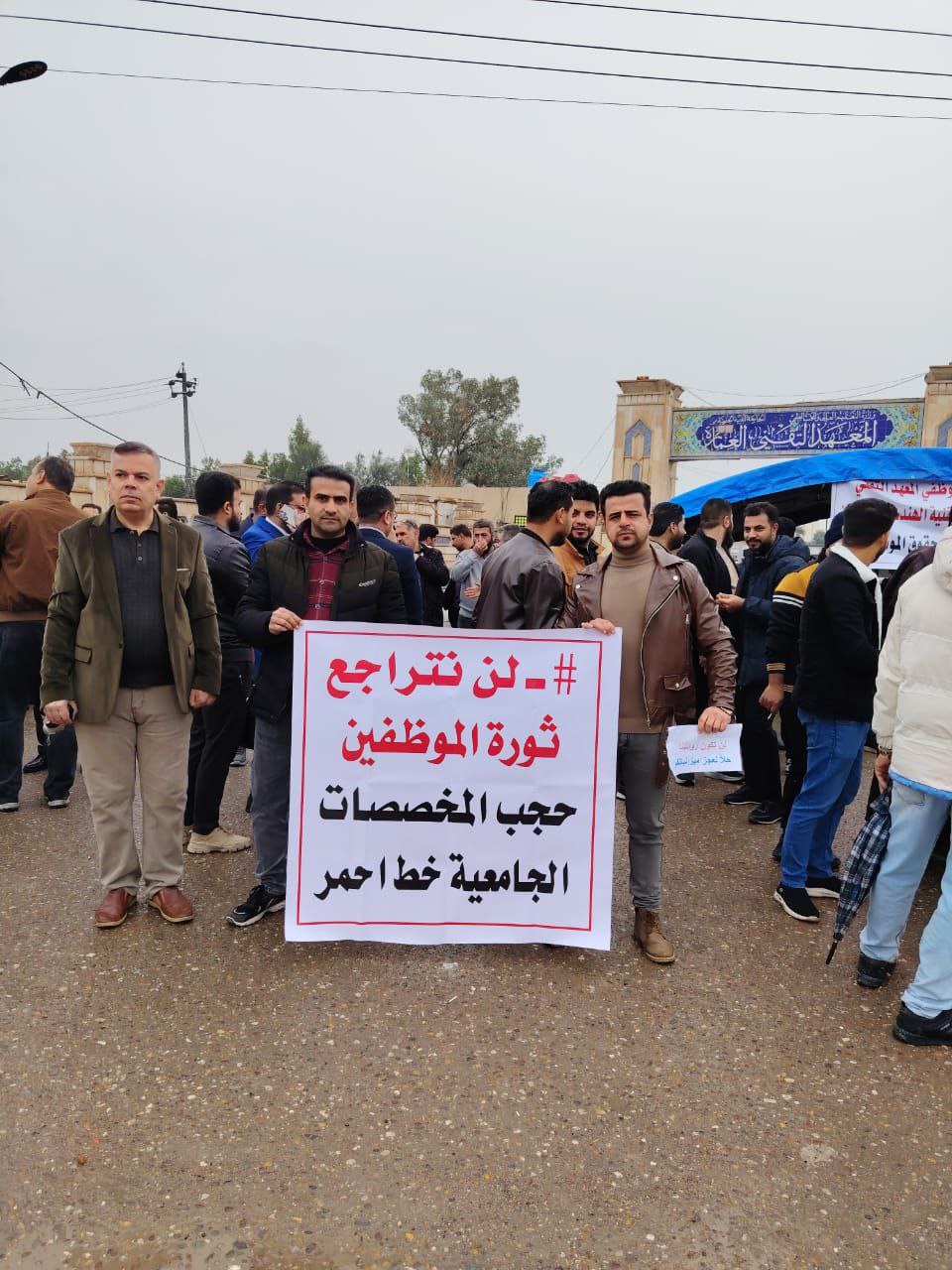 وناشد المعتصمون مجلس الوزراء، ووزارة المالية بالعدول عن قرارهم لإنهاء هذه الأزمة، مشيرين إلى أن الكوادر التقنية والهندسية في ميسان تمثل ركيزة أساسية في العملية التعليمية والتنموية في المحافظة، ولا يمكن القبول بالمساس باستحقاقاتها القانونية، وخلاف ذلك سيبقى الاعتصام مفتوحا الى ان يتم استلامهم كامل رواتبهم دون اي استقطاع.