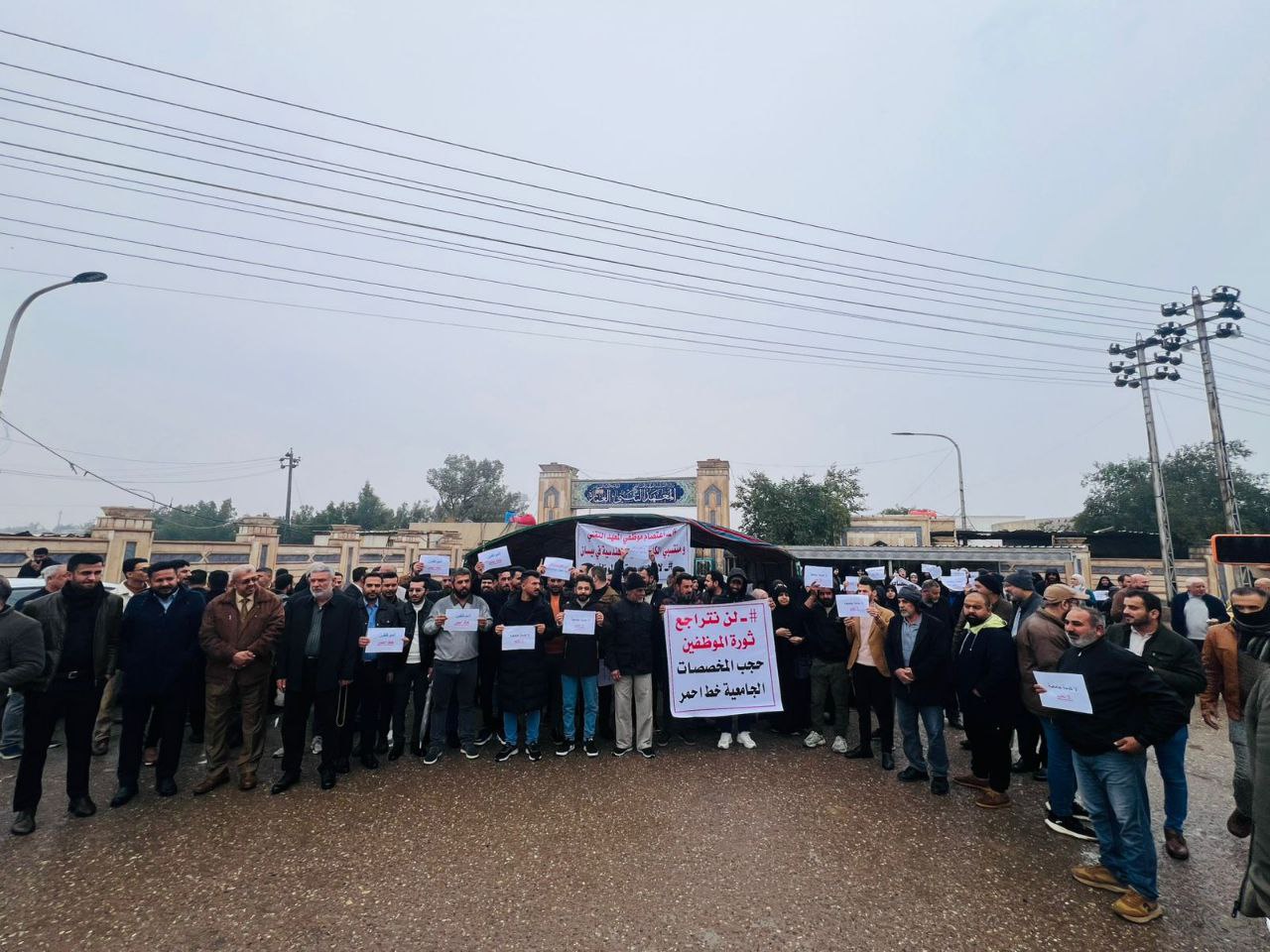 رفع المعتصمون شعارات تطالب الحكومة العراقية بضرورة العدول عن قرار مجلس الوزراء القاضي بحجب المخصصات الجامعية والهندسية عنهم، وأكد المشاركون في الاعتصام أن هذا الإجراء يمثل مخالفة صريحة لنصوص قانون الخدمة الجامعية الذي أقره البرلمان العراقي رقم 23 عام 2008، والمنشور في جريدة الوقائع العراقية بالعدد (4067) في 31 آذار 2008، والذي كفل لهذه الشريحة حقوقاً مالية تتناسب مع طبيعة المهام العلمية والفنية التي يؤدونها.