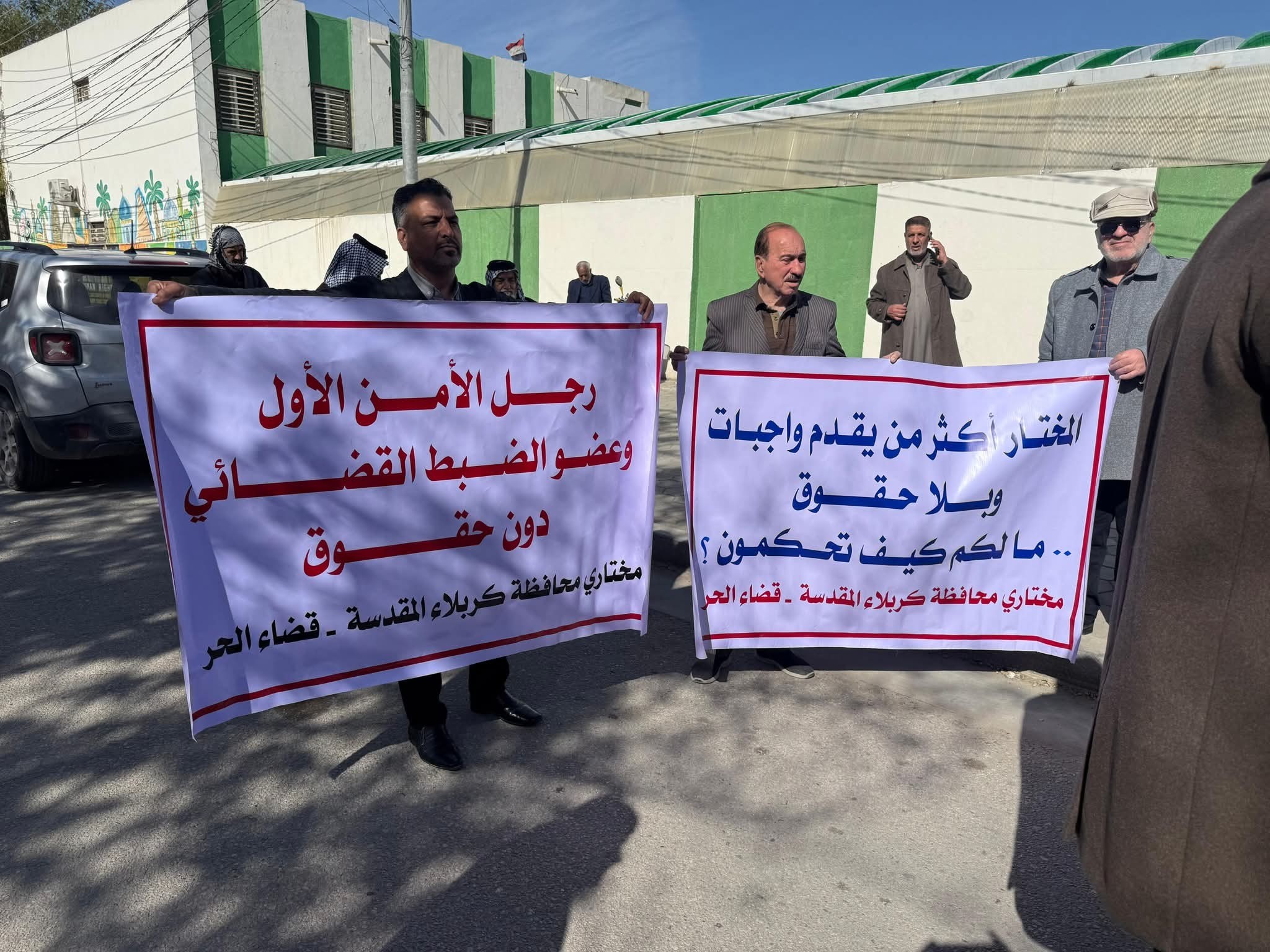 المختارون في كربلاء يطالبون بحقوقهم امام مكتب مجلس النواب بالمحافظة