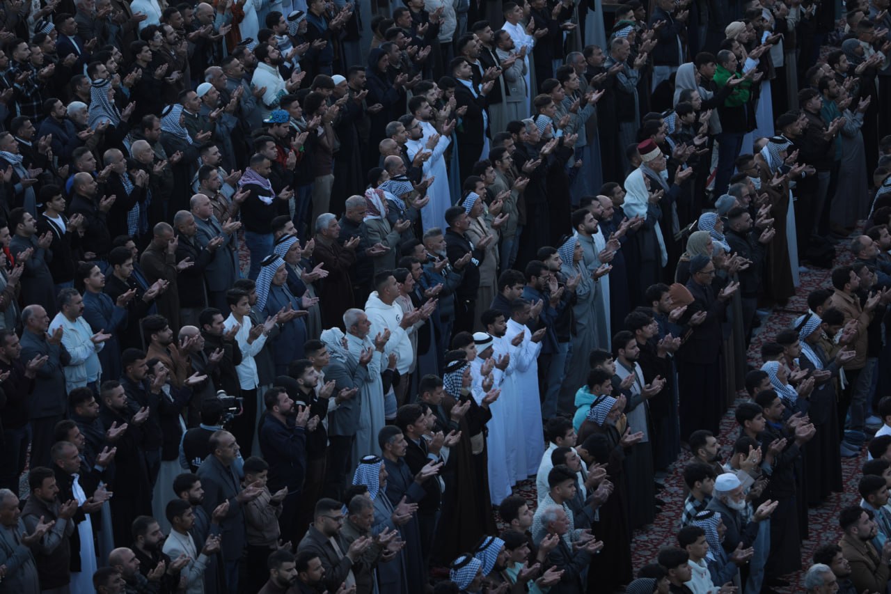 وقال خطيب صلاة العيد الشيخ "احمد الصافي" في خطبته "ها قد اطل عيلنا عيد الفطر المبارك عيد الرحمة والمغفرة بعد شهر كريم من الصيام والقيام والطاعات، وانه يوم الجوائز الالهية حيث يباهي الله بكم ملائكته فهنيئا لكم بقبول الاعمال، وأسأل الله ان يعيده علينا وعليكم وعلى الامة الاسلامية جمعاء بالخير واليمن والبركات"، مشيرا الى ان" العيد وان كان يحمل في طياته معاني السرور الا ان قلوب المؤمنين لتتقطع اليوم وهي ترى ما يحل بأشقائنا واخواننا في الدين والانسانية من ويلات ومآسي ففي الوقت الذي نكبر فيه الله تعالى فرحا بنعمته، تتعالى صرخات الاطفال، وتنهمر دموع الثكالى، وتتصاعد ألسنة اللهب فوق بيوت الأمنين في إيران ولبنان، مع تواصل العدوان العسكري عليهما"، مشددا بالقول اننا" ندين بأشد العبارات هذه الحرب الظالمة، وندعو سائر المسلمين واحرار العالم الى التنديد بها والتضامن مع الشعبين الايراني واللبناني المظلومين، ونناشد جميع الجهات الدولية الفاعلة ودول العالم، لاسيما الدول الاسلامية لكي يبذلوا قصارى جهودهم لإيقافها "، داعيا بالقول "اللهم اننا نرفع اكف الضراعة اليك وانت سميع الدعاء، اللهم احفظ المؤمنين اينما كانوا، واكشف عنهم البلاء، واجمع كلمتهم على الحق، اللهم انا نستودعك شهدائهم الذين بذلوا ارواحهم دفاعا عن ديارهم، فجعلهم في اعلى عليين، مع النبيين والصديقين واشفي جرحاهم وفك اسراهم، والهم ذويهم الصبر والسلوان".