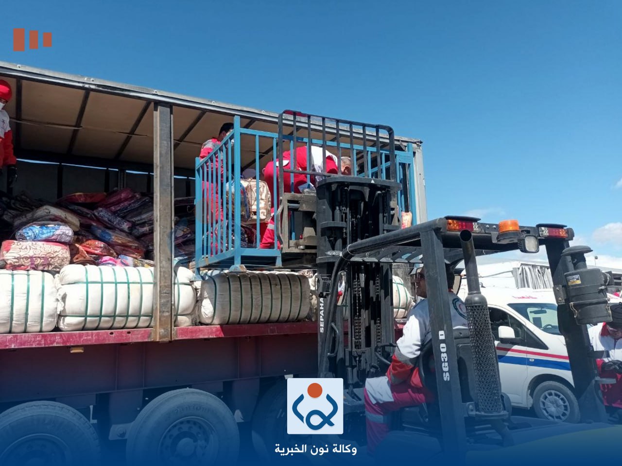 وقال معاون رئيس قسم العلاقات العامة في العتبة الحسينية المقدسة احمد حسن فهد في تصريح خص به وكالة نون الخبرية، ان "الوفد الاغاثي لبى نداء المرجعية الدينية المتمثلة بالسيد علي السيستاني في إغاثة الشعب الإيراني وبناء على توجيهات المتولي الشرعي للعتبة الحسينية المقدسة الشيخ عبد المهدي الكربلائي انطلقت قافلة المساعدات الطبية والاغاثية والعينية من مدينة كربلاء المقدسة الى الشعب الإيراني وعند منفذ مهران استقبلت جمعية الهلال الأحمر الإيراني القافلة وقدمت لها مختلف المساعدات التي سهلت مرورها في مدن إيرانية عدة لغاية وصولها الى العاصمة طهران وهي تحمل الأجهزة الطبية المعدات والمستلزمات الصحية واللوجستية، حتى وصلت الى مخازن جمعية الهلال الأحمر الإيراني ليتم تفريغها".