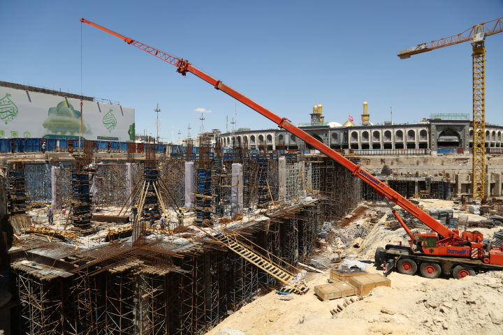 وقال مدير قسم مشاريع التوسعة في العتبة الحسينية المقدسة المهندس "حسين رضا مهدي" في تصريح خص به وكالة نون الخبرية اننا" اليوم في شهر ذي القعدة وتبقى على حلول شهر محرم الحرام اقل من شهرين، ومثلما وعدنا زائري الامام الحسين (عليه السلام)، وادارة العتبة الحسينية المقدسة بأن يكون العمل لا يقل عن (20) ساعة يوميا، وبحمد لله فإن العمل ومنذ اسبوعين اصبح (22) ساعة يوميا، حيث يبدأ العمل في الوجبة الصباحية من الساعة السابعة صباحا لغاية الساعة السادسة مساء، ويباشر العمل في الوجبة المسائية من الساعة السابعة ليلا حتى الساعة السادسة صباحا، اي بمعدل (22) ساعة عمل فعلي، بل حتى وجبات الطعام المقدمة للعاملين اصبحت جاهزة بطريقة (السفري) داخل الموقع، حيث كانت الطريقة سابقا ذهاب العاملين الى مطعم المشروع وهذا يستغرق من وقت العمل، اما الآن فيتناولون طعامهم في موقع عملهم، اما ما يتعلق بعدد الملاكات الهندسية والفنية العاملة فكانت في شهر رمضان المبارك (70) شخص فقط، واصبح العدد اليوم اكثر من (310) شخص تنفيذي فعلي بين مهندس وفني من غير الاداريين والمحاسبين والساندين الذين يصل عددهم الى مئة شخص، وموزع العمل والمهام على (5) متعهدين، وكل متعهد يشرف على (50 ــ 60) شخص يعملون في جزء من المشروع يسمى (مقطع) محدد، ومساحة (7000) الاف متر مربع قسمت على خمسة متعهدين مسؤولين عن انجاز العمل فيها بطريقة توزيع المهام بعد ان وفرت لهم جميع متطلبات العمل البشرية والآلية ومواد العمل لينجز الف متر مربع، ونحن ننظر الى (7000) متر مربع تنجز في وقت واحد، ومنها نستطيع تجاوز اي عائق او حادث يعرقل العمل فينحسر في مقطع واحد بحل اسهل بدل ايقاف العمل بكامل المساحة التي تكون المعالجة فيها اصعب".