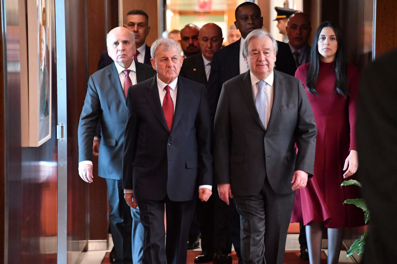 وقال المكتب الاعلامي لرئيس الجمهورية في بيان تلقته وكالة نون الخبرية، انه "التقى رئيس الجمهورية عبد اللطيف جمال رشيد، في مبنى الأمم المتحدة، الأمين العام لمنظمة الأمم المتحدة أنطونيو غوتيريش، وبحضور وزير الخارجية فؤاد حسين، ووزير البيئة نزاز ئاميدي، ومحافظ البصرة أسعد العيداني، على هامش أعمال مؤتمر الأمم المتحدة للمياه المنعقد في نيويورك".